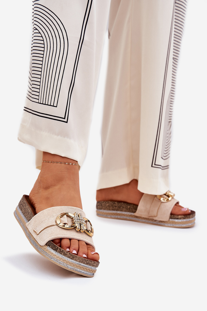 Жіночі Сандалі На Платформі З Блискітками І Золотою Декорацією Бежеві Rilirea