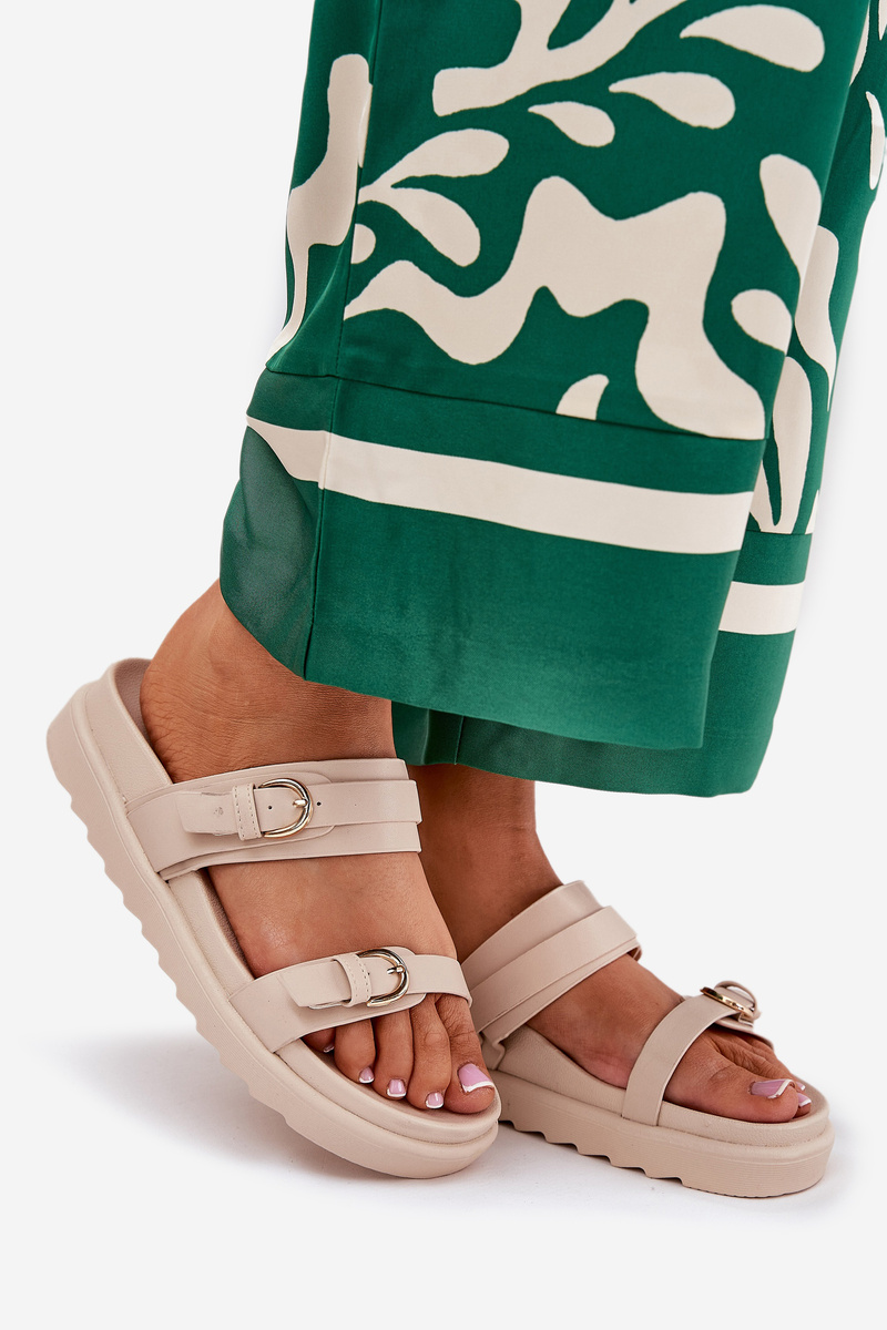 Жіночі Сандалі На Платформі З Золотими Пряжками Бежеві Wernone