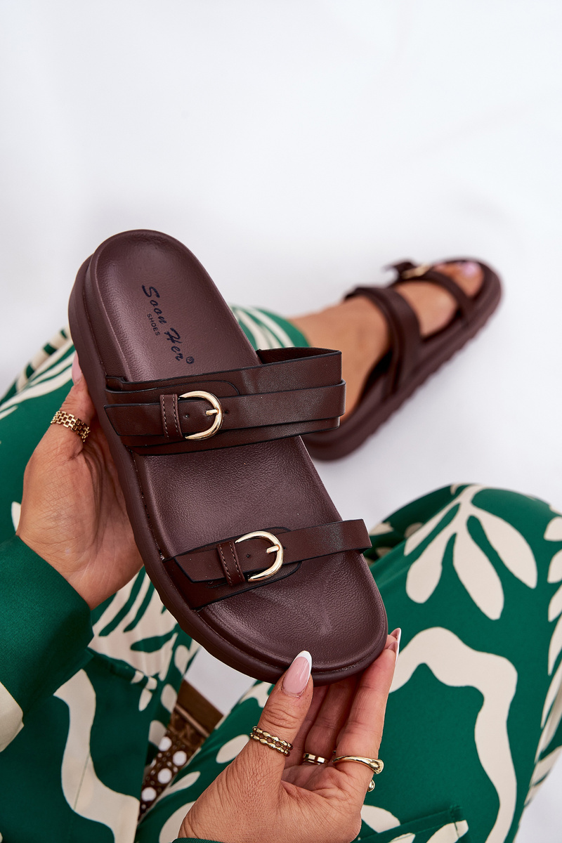 Жіночі Сандалі На Платформі З Золотими Пряжками Коричневі Wernone