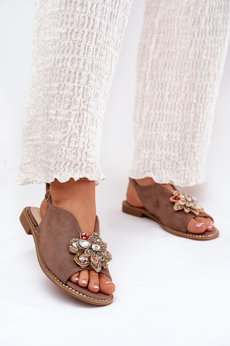 Жіночі Сандалі На Плоскому Каблуку З Декором S.Barski KV27-001 Темно-бежеві