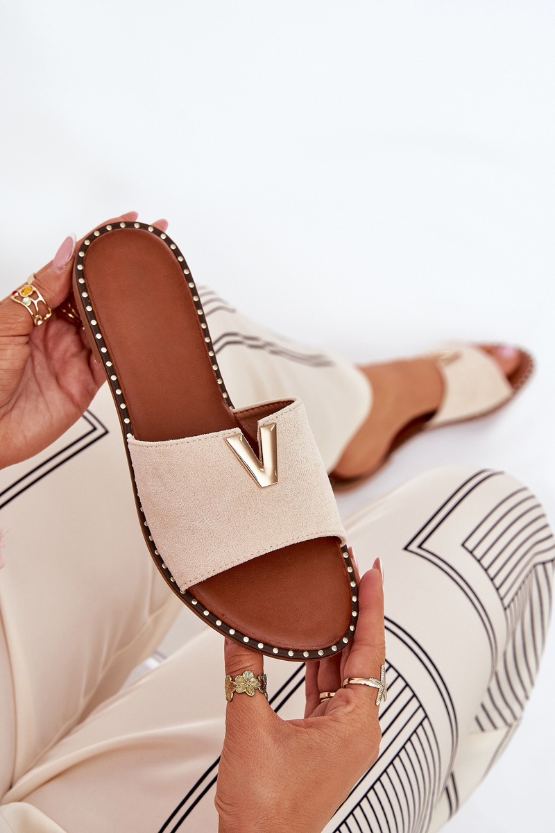 Жіночі Сандалі На Плоскому Каблуці З Декоративними Деталями Бежеві Saliena