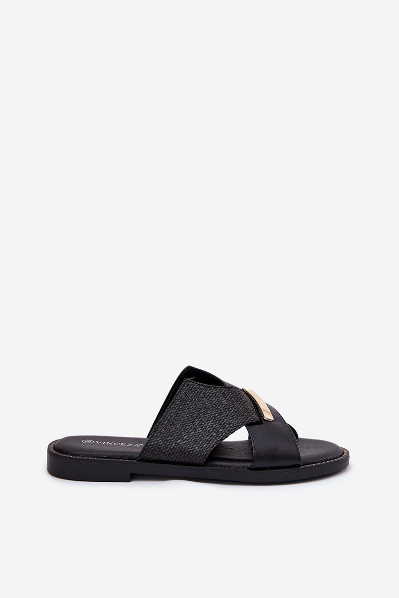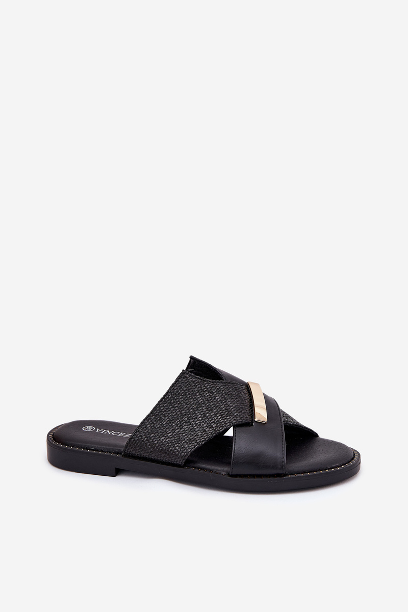 Жіночі Сандалі На Плоскому Каблуці З Декоративним Елементом Vinceza 17385 Чорні