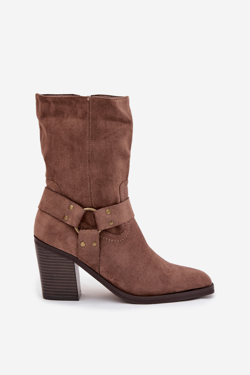 Жіночі Теплі Чоботи На Підборах З Ремінцями І Декоративною Деталлю Коричневі Neria