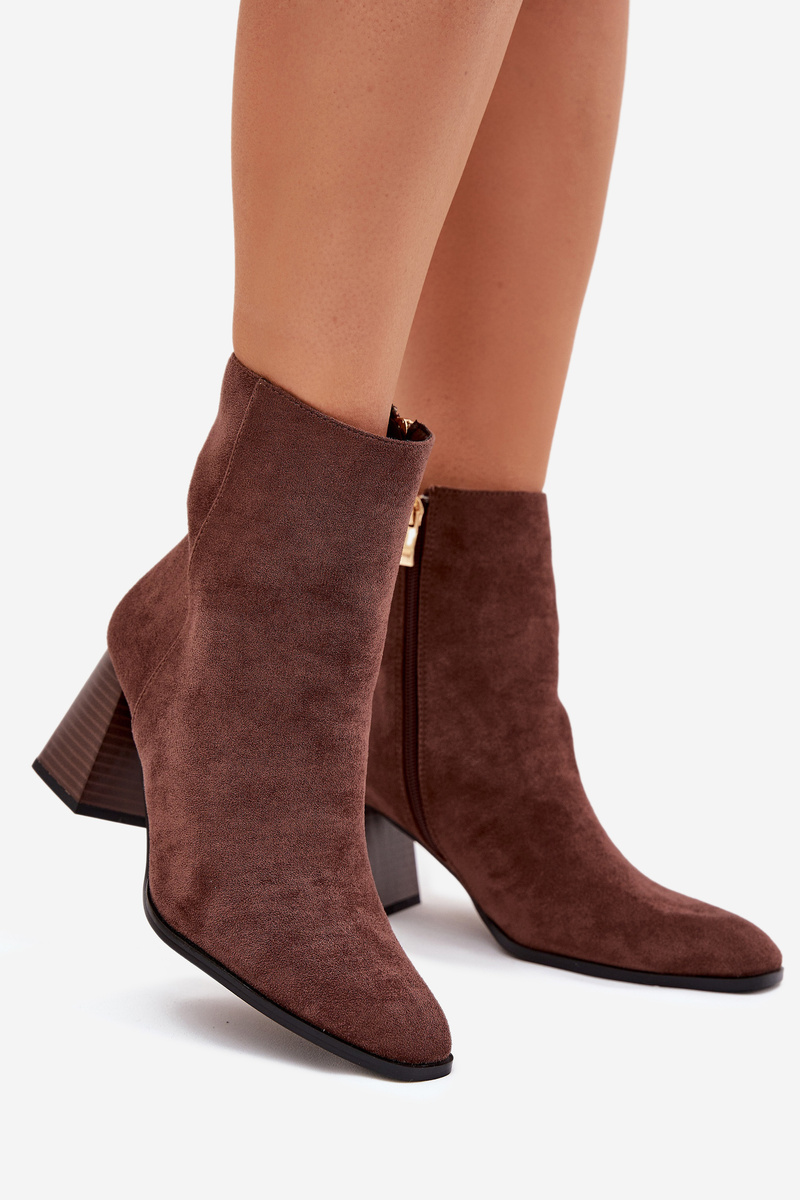Жіночі Чоботи З Еко Замші На Підборі З Замком Коричневі Zelita