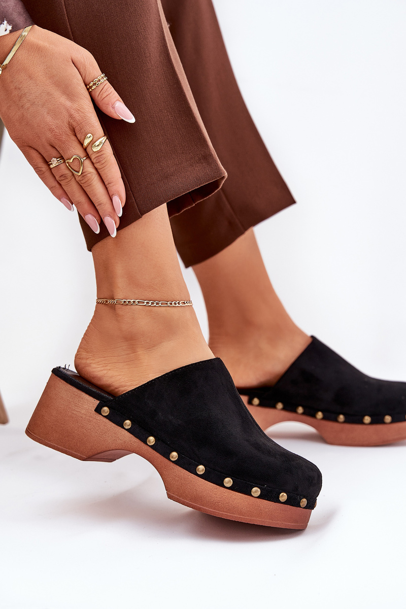 Легкі жіночі сандалі, виготовлені з еко замші. Встановлені на платформі та підборах. Прикрашені цвяхами, які надають їм модного та унікального характеру. Усередині є м'яка еко-шкіряна устілка, яка гарантує комфорт протягом усього дня. Сандалі мають закриті, округлі носи. Ідеальні для щоденного використання, чудово поєднуються з літніми сукнями, спідницями та брюками. Будь ласка, зверніться до розмірної сітки при виборі розміру.