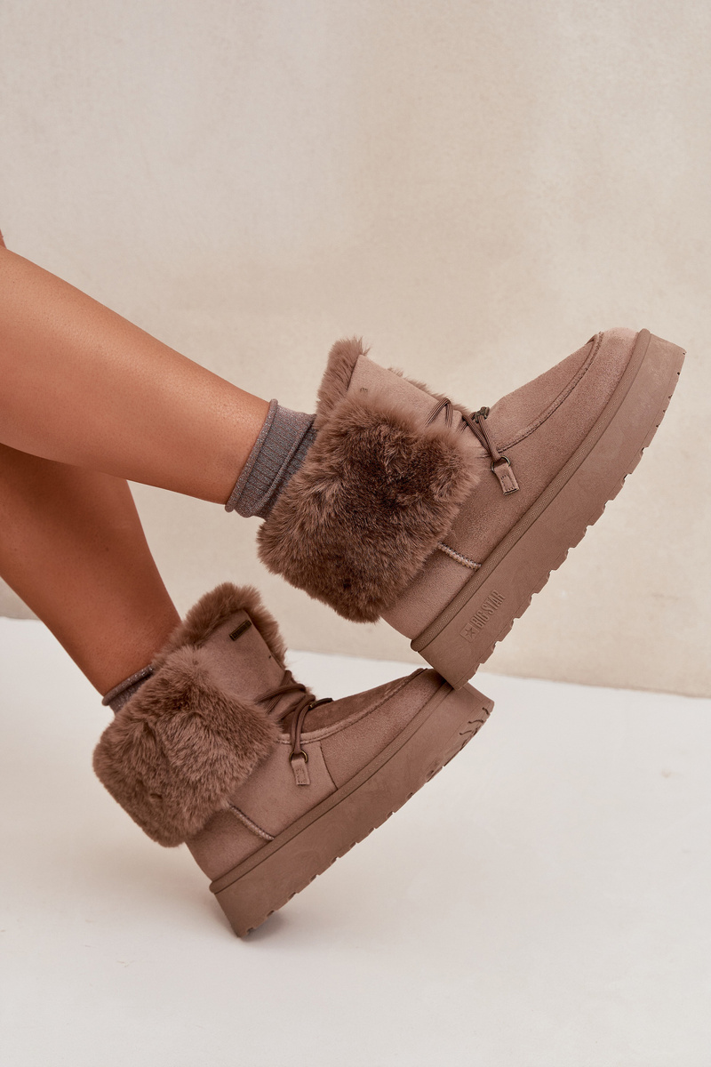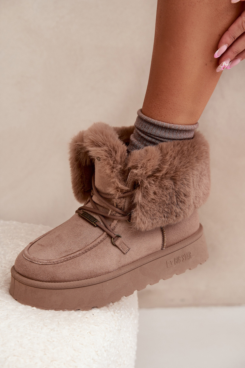 Жіночі Чоботи На Платформі З Пухом І Шнурівкою Big Star SS274114 Бежеві