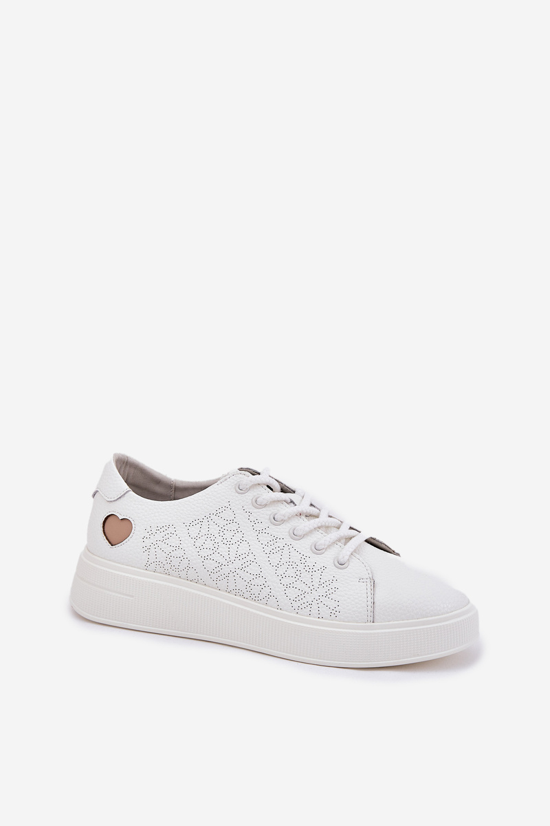 Жіночі кросівки від бренду Vinceza. Виготовлені з натуральної шкіри. Встановлені на платформі. Заокруглені носки. Верх прикрашений делікатним ажурним візерунком і сердечком. М’яка шкіряна устілка забезпечує комфорт і належне амортизування. Легкі та зручні, ідеально підходять для весняно-літніх стилізацій! Будь ласка, зверніться до розмірної сітки при виборі розміру.