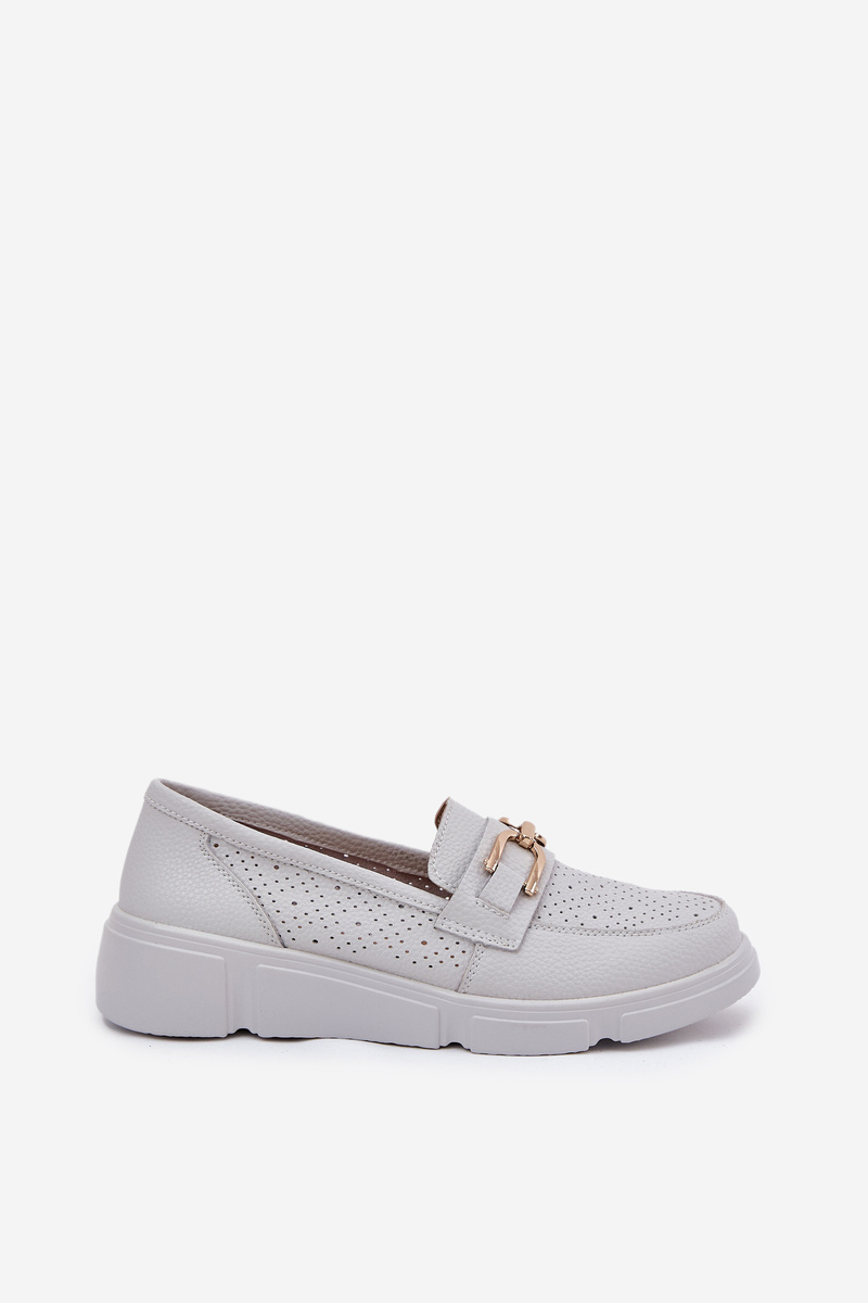 Жіночі Шкіряні Мокасини з Золотим Деталем Jasnoszare Vinceza 88007
