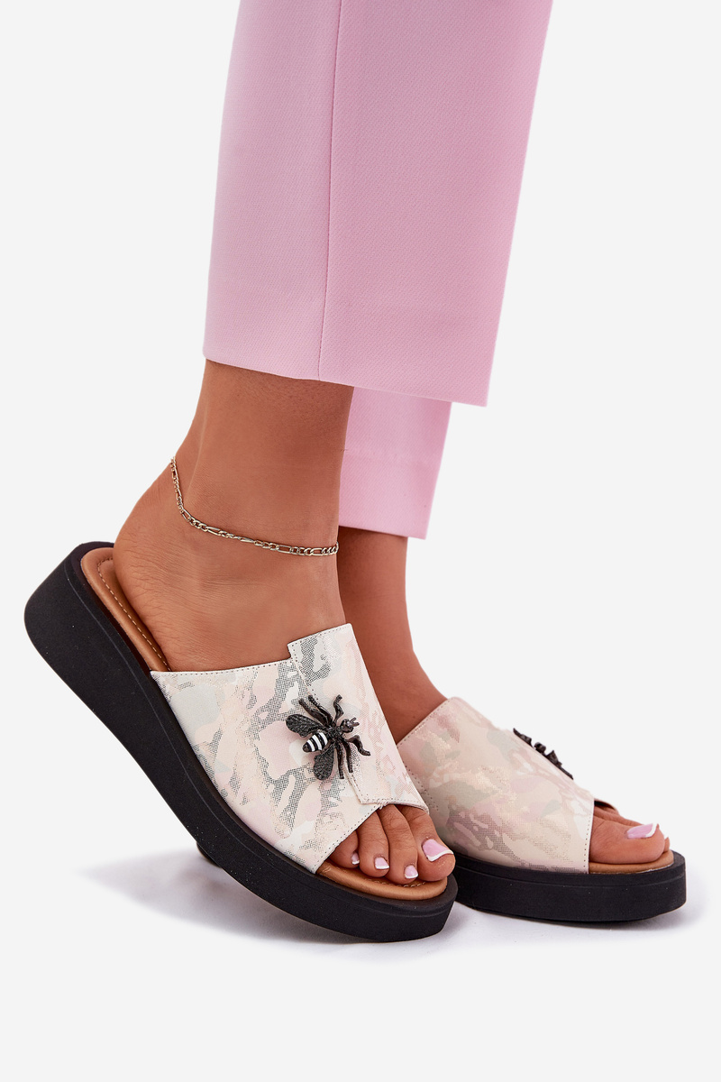 Жіночі Шкіряні Сандалі З Брошкою Vinceza 66752 Бежеві