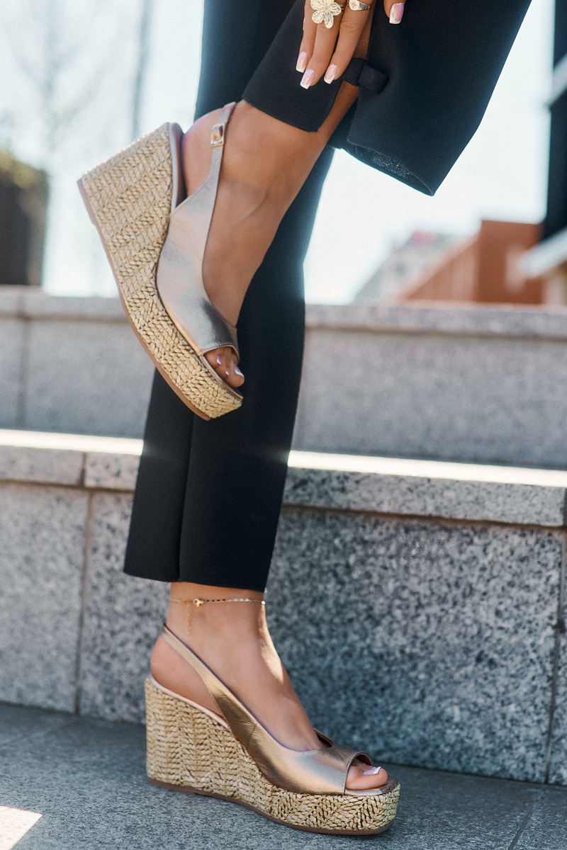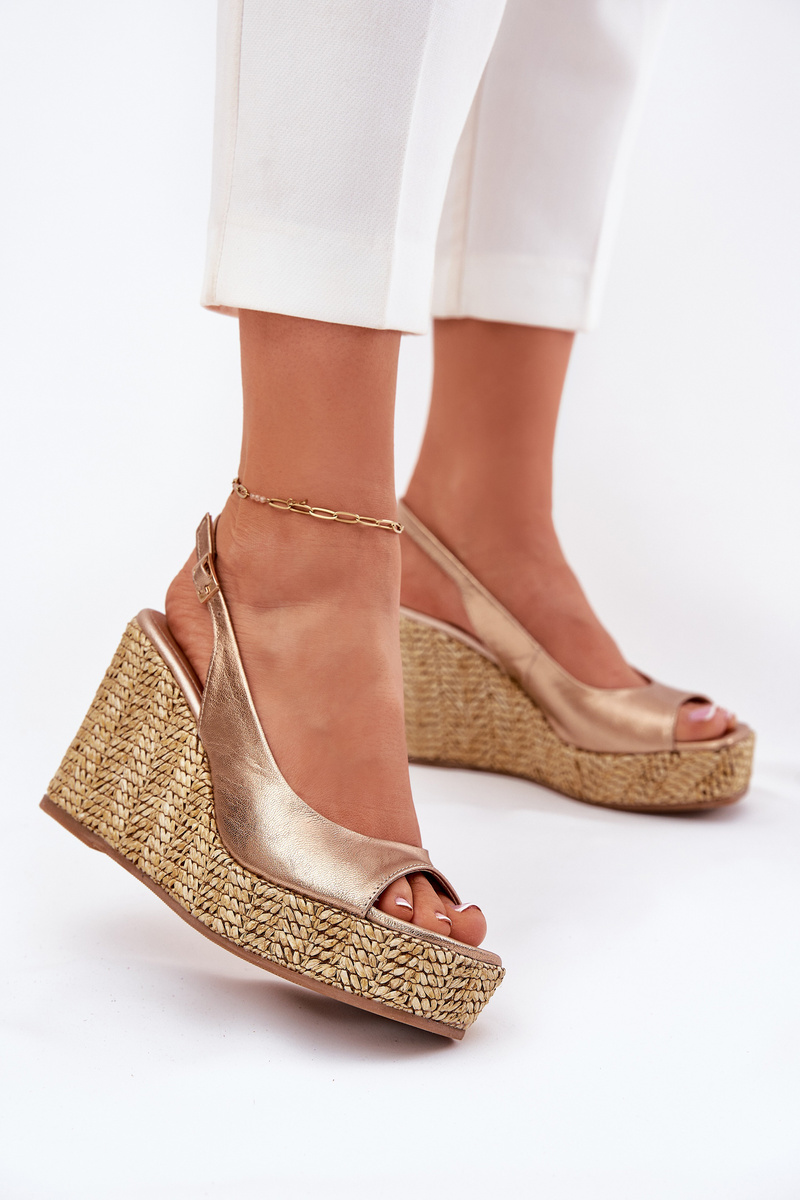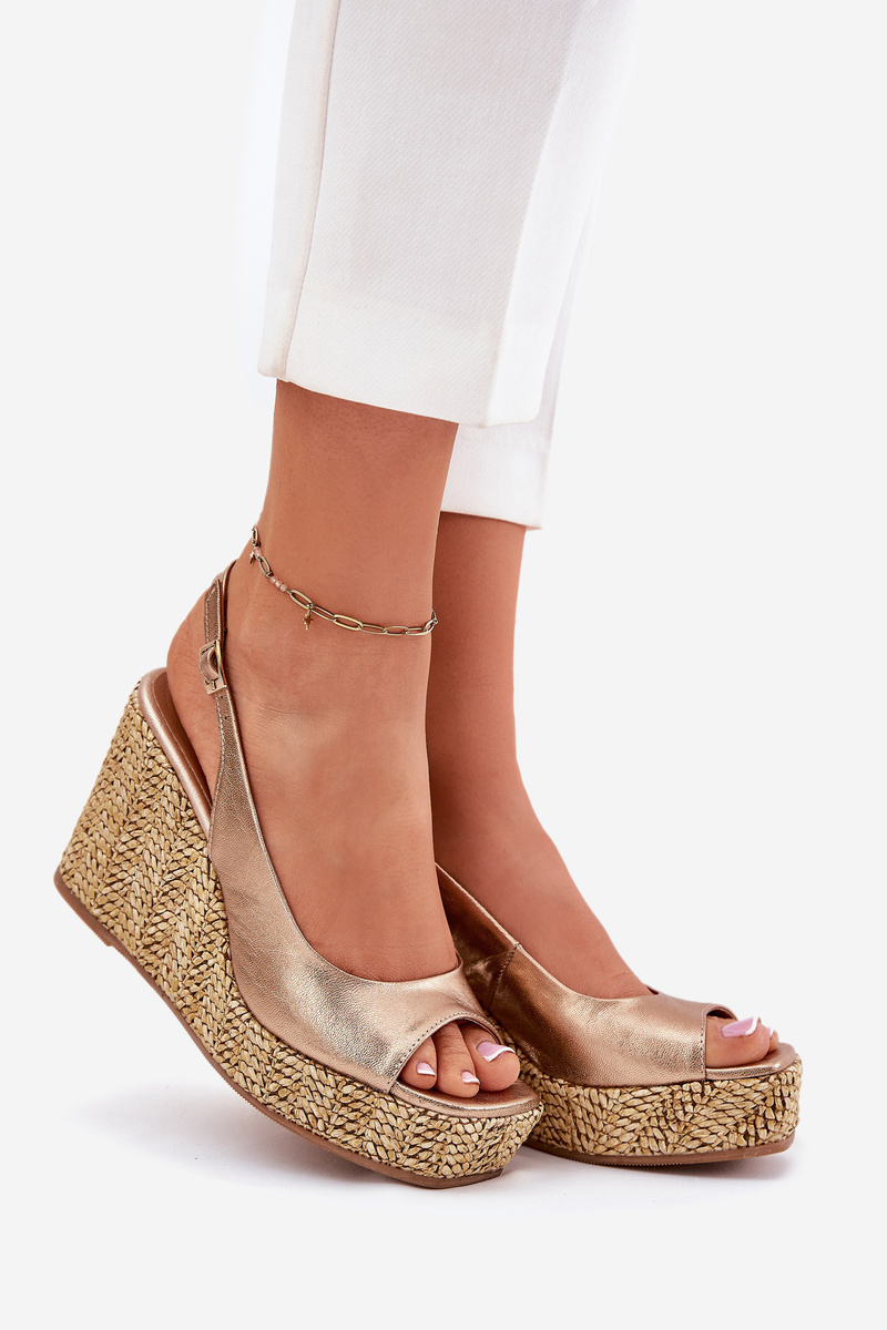 Жіночі Шкіряні Сандалі На Танкетці З Плетінням Лаура 2789 Золоті
