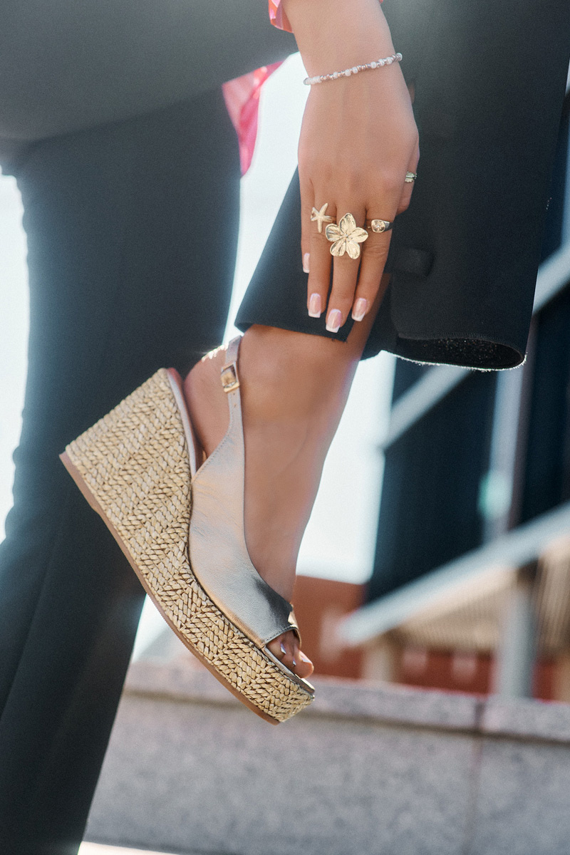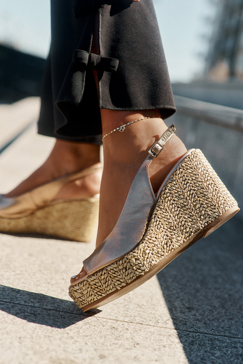 Жіночі сандалі з натуральної шкіри – елегантний варіант для літніх днів. Розміщені на платформі та підборах, прикрашених плетінням, вони поєднують комфорт з модним виглядом. Застібаються на пряжку з регульованим ремінцем, що дозволяє ідеально підлаштуватися до ноги, забезпечуючи комфорт протягом усього дня. Ці сандалі стануть чудовим вибором для елегантних і повсякденних стилів, додаючи їм унікального характеру. Будь ласка, зверніться до розмірної сітки при виборі розміру.
