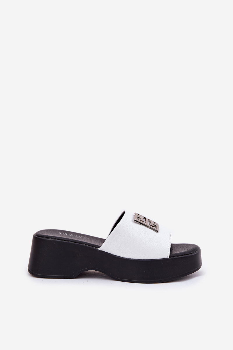 Жіночі босоніжки на танкетці Vinceza. Розташовані на платформі, вони забезпечують стабільність і комфорт під час носіння. Виготовлений з натуральної шкіри. Золотий декор спереду додає їм тонкого блиску. Легка модель, яка не тільки підкреслить ваш наряд, але й додасть нотку елегантності. Обираючи розмір, орієнтуйтеся на таблицю розмірів.