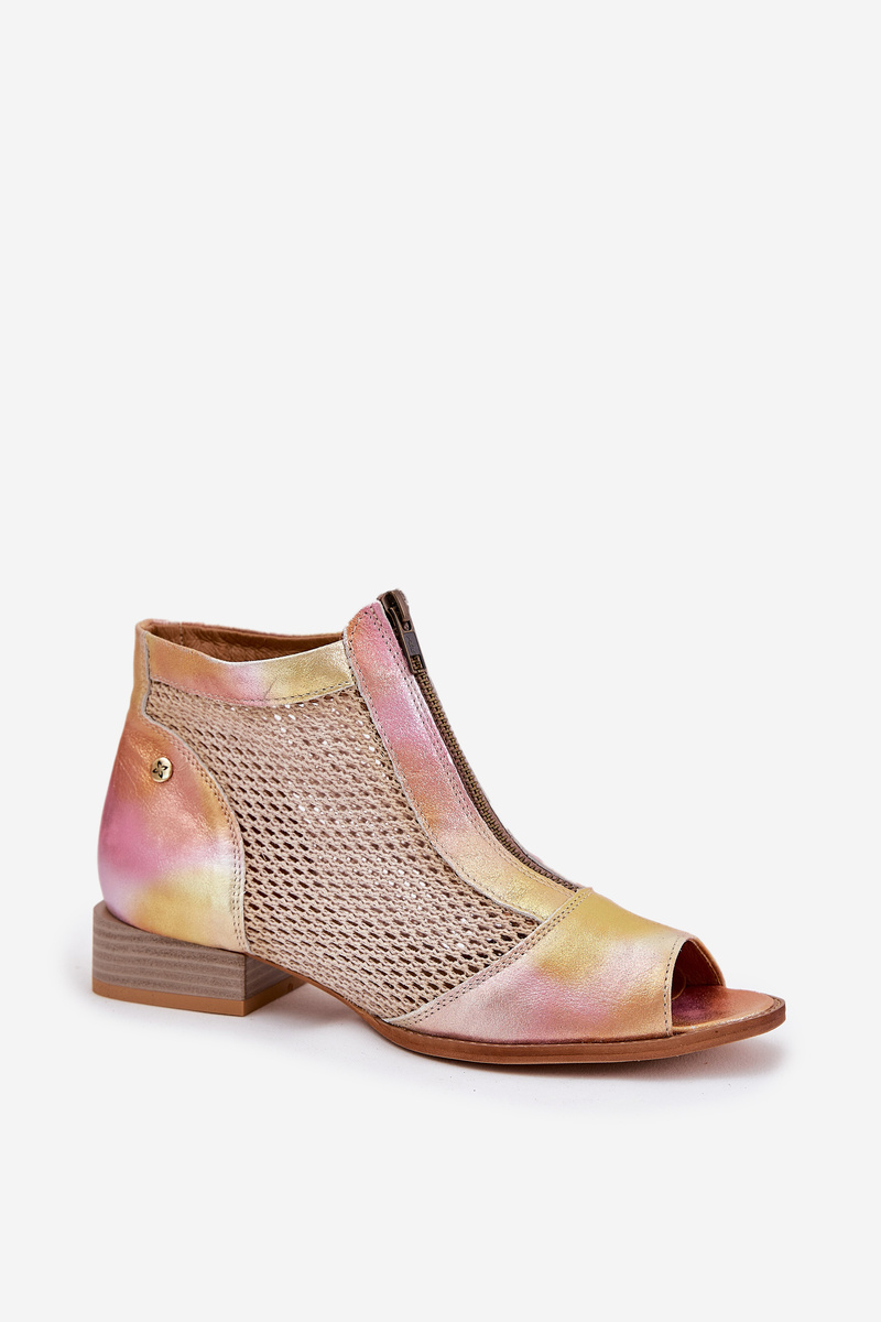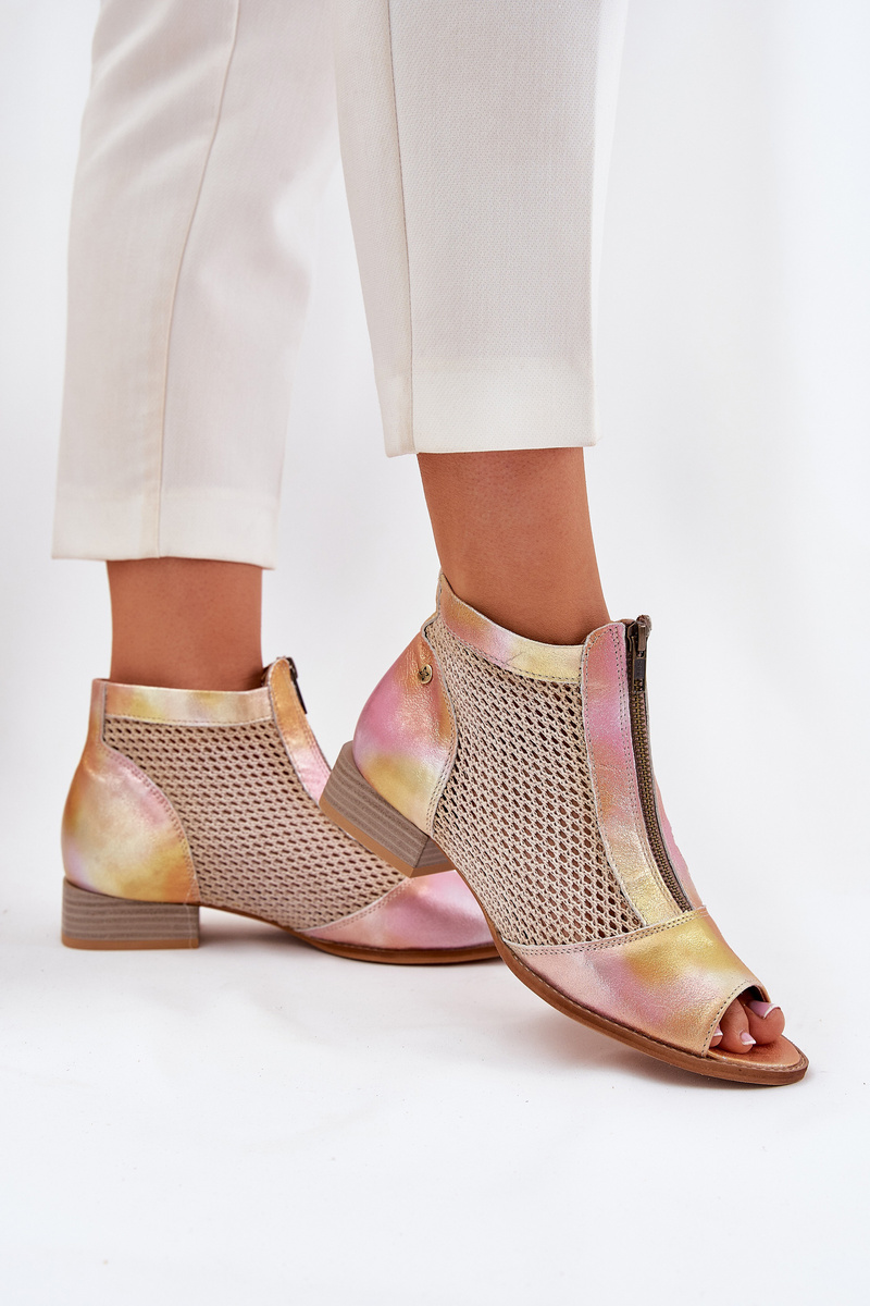 Жіночі Шкіряні Черевики На Плоскому Каблуку З Відкритими Пальцями Maciejka Рожево-Помаранчеві 06413-15