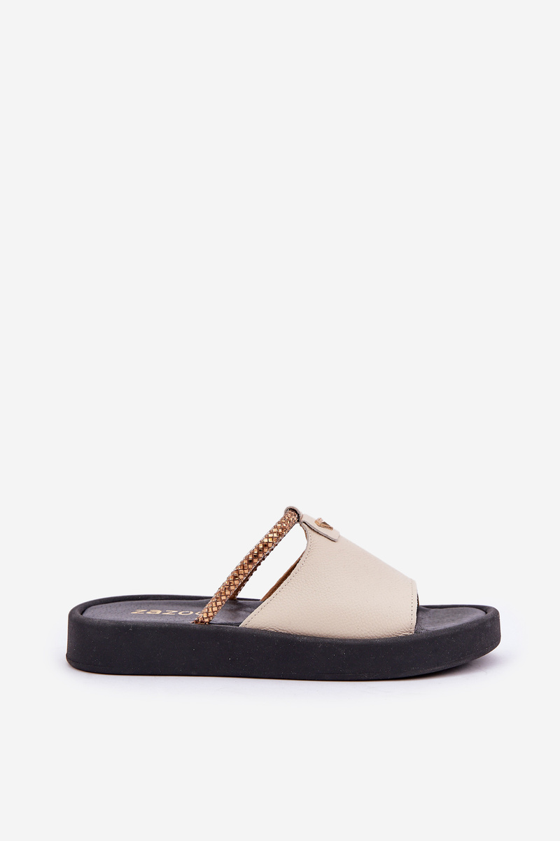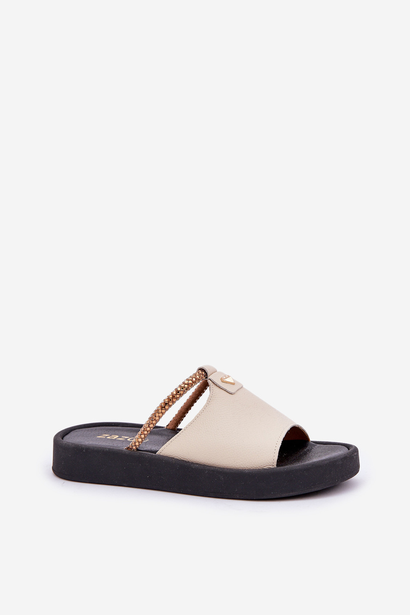 Жіночі Шльопанці зі Шкіри Бежеві Зазу 2896