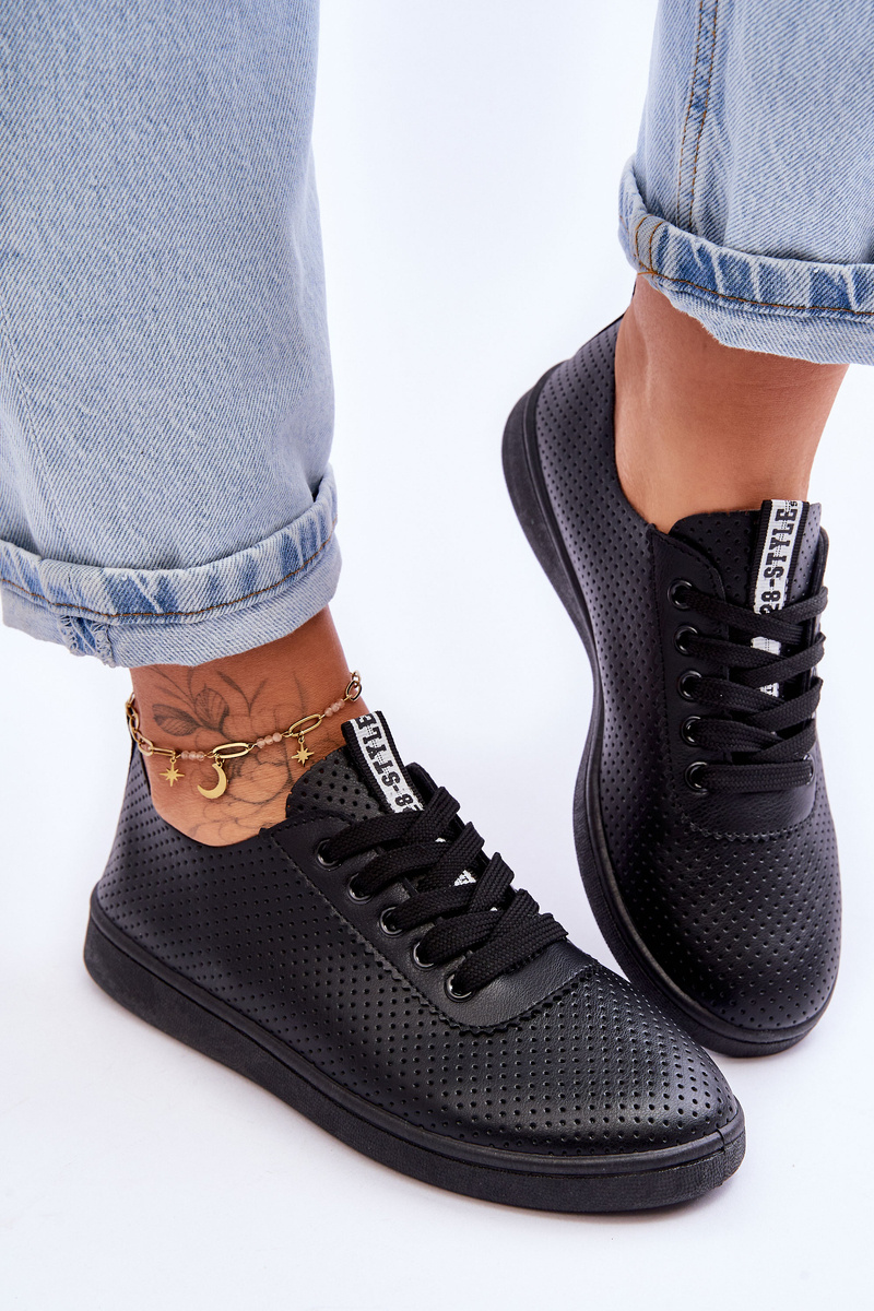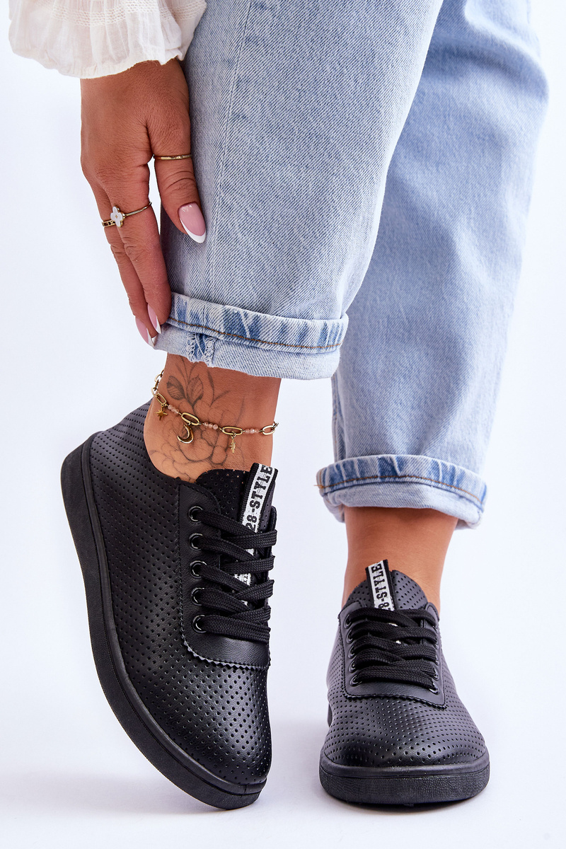 Жіночі ажурні кросівки на шнурівці чорного кольору