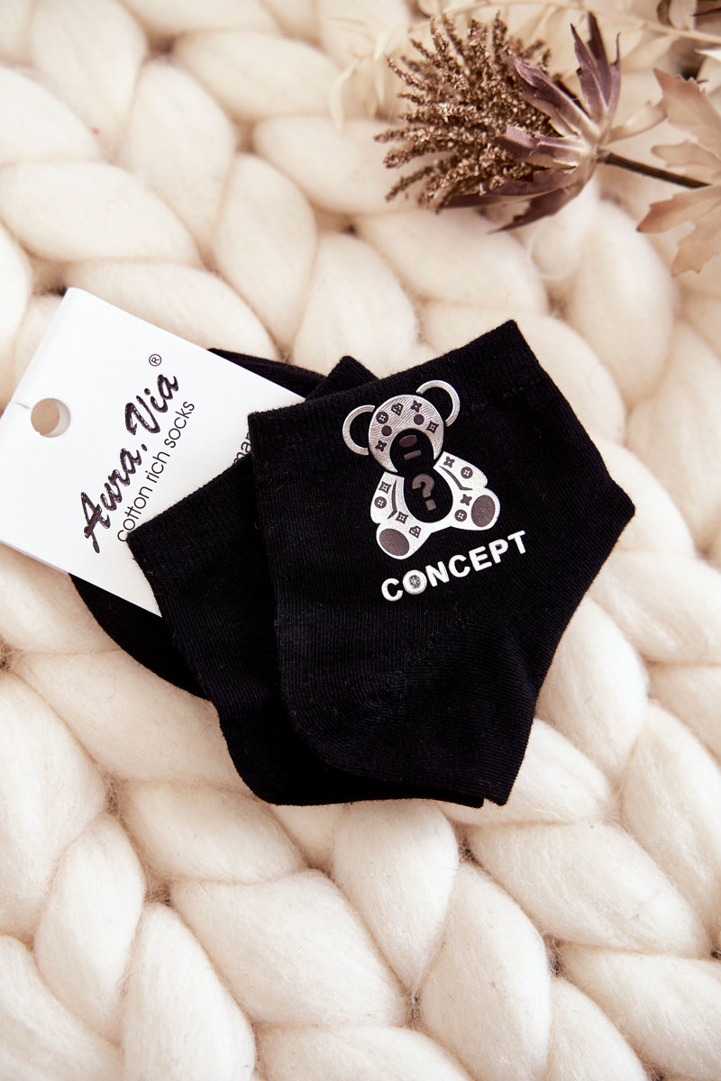 Жіночі бавовняні шкарпетки з сріблястим ведмедиком Чорні