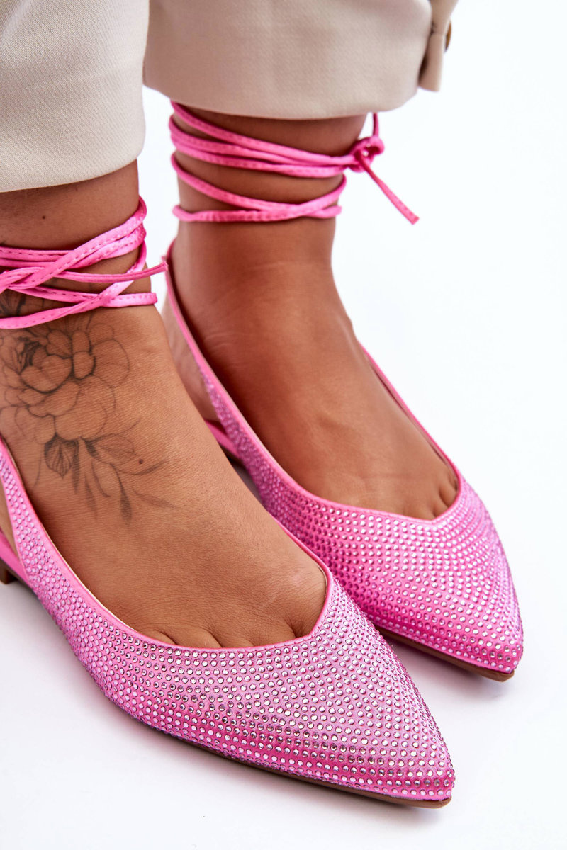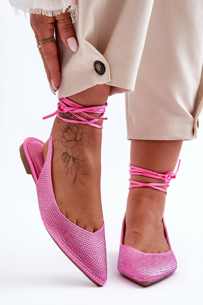 Жіночі балетки на шнурівці, прикрашені шпильками, рожеві Jange