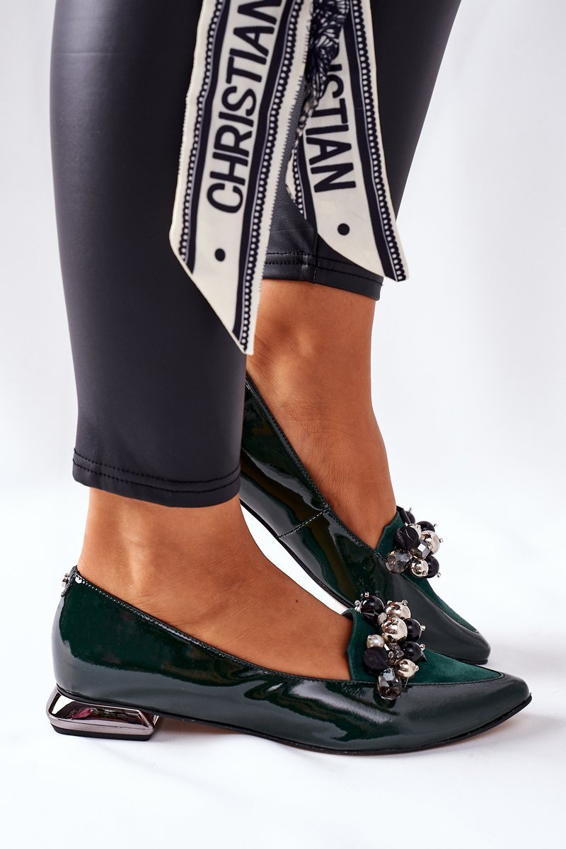 Балетки, безсумнівно, одне з найзручніших видів взуття, яке поєднується з усім. Представлена модель повністю виготовлена з лакованої шкіри, що робить їх дуже елегантними, а також дуже зручними. Модний декор у вигляді великих бус на носі підкреслює їх неповторний стиль. При виборі розміру скористайтеся таблицею розмірів.