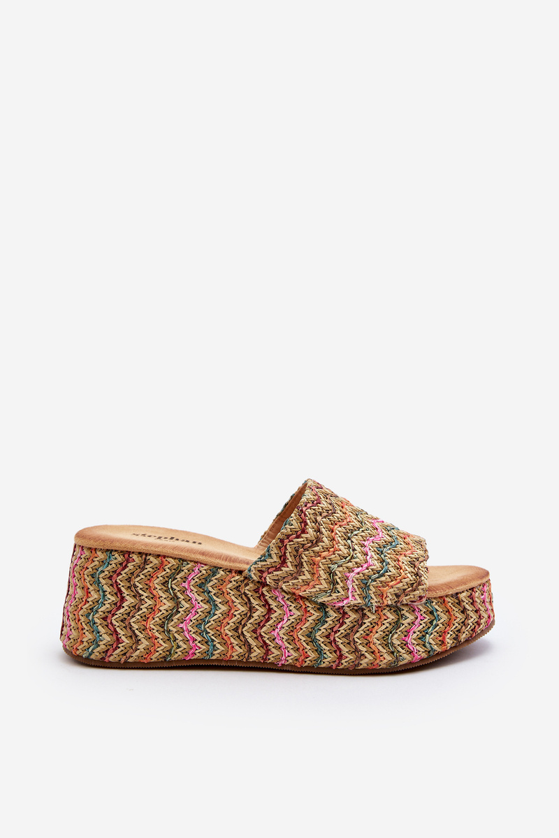 Класичні жіночі шльопанці встановлені на масивній платформі та танкетці, які додатково прикрашені плетеними джутовими косами. Виготовлена з приємної на дотик еко замші. М'яка устілка виконана з еко шкіри. Класична модель, сліпони. Ці шльопанці - чудовий вибір для спекотних літніх днів! Обираючи розмір, орієнтуйтеся на таблицю розмірів.