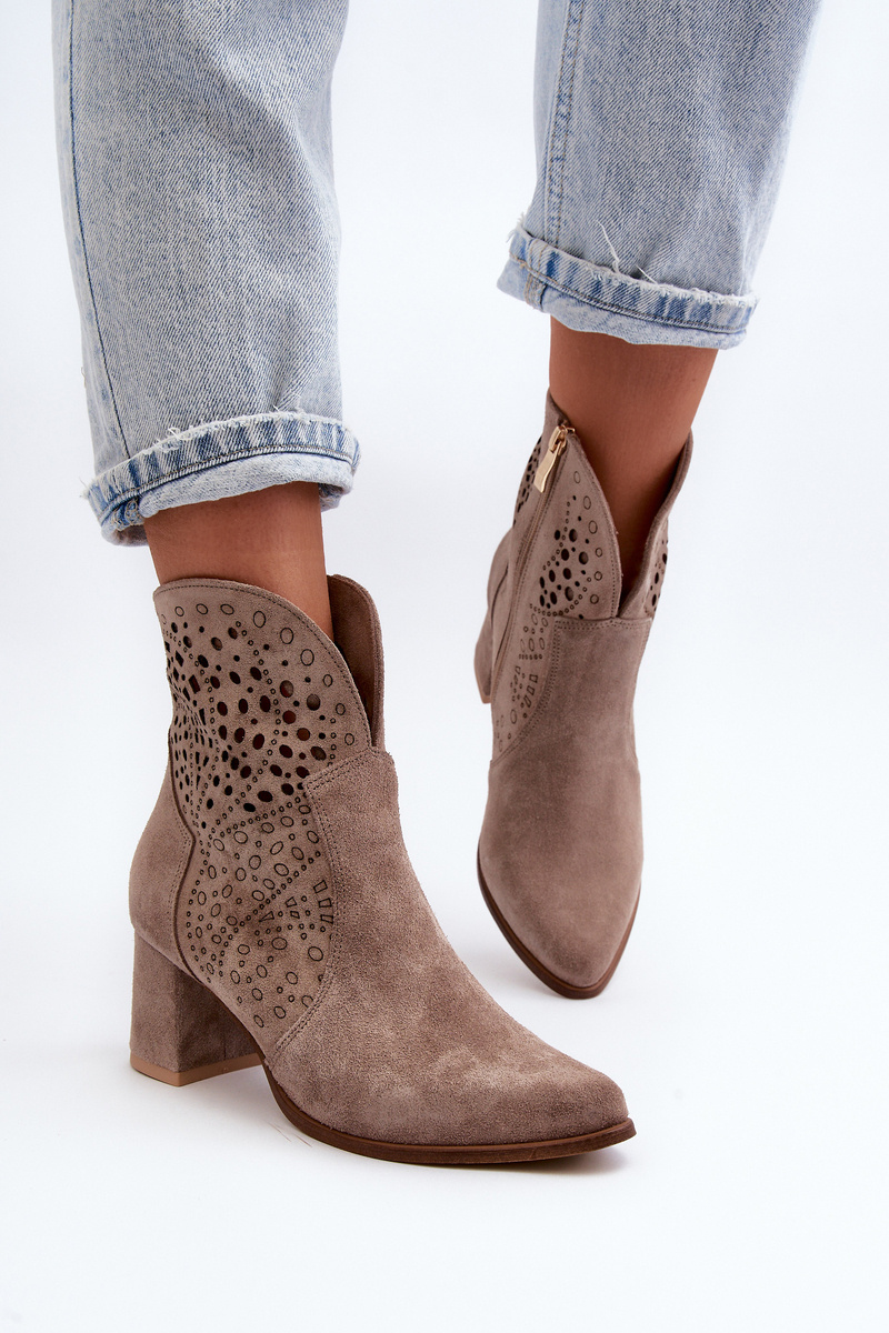 Жіночі ботильйони на підборах виготовлені з натуральної замші. Мереживний малюнок і каблук роблять їх придатними для багатьох укладок. Застібається на блискавку. М'яка, надзвичайно зручна устілка забезпечить комфорт під час використання. Ви точно повинні їх мати! Обираючи розмір, орієнтуйтеся на таблицю розмірів.