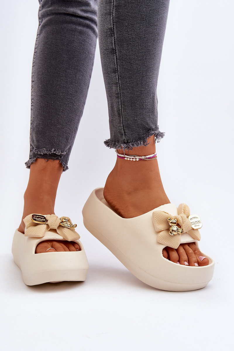 Жіночі бежеві поролонові шльопанці з бантом Salessa