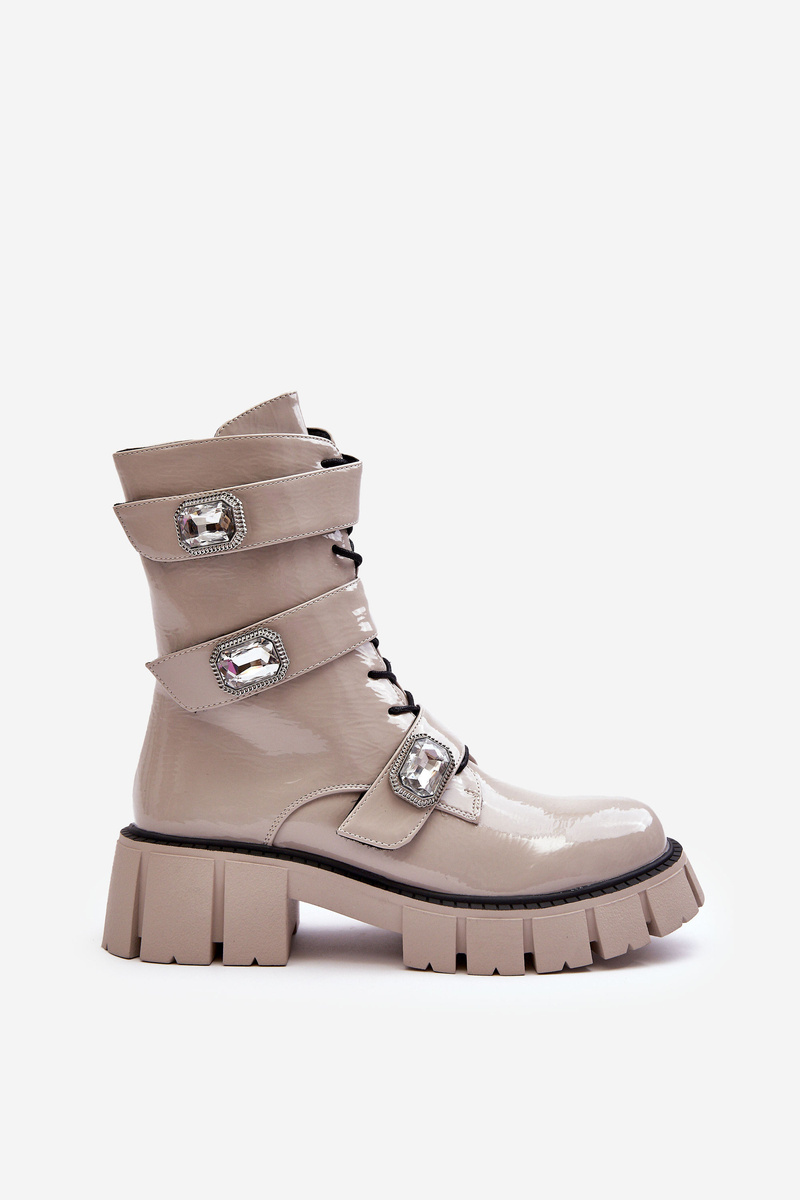Жіночі блискучі чоботи на шнурівці світло-сірі SBarski MR870-61