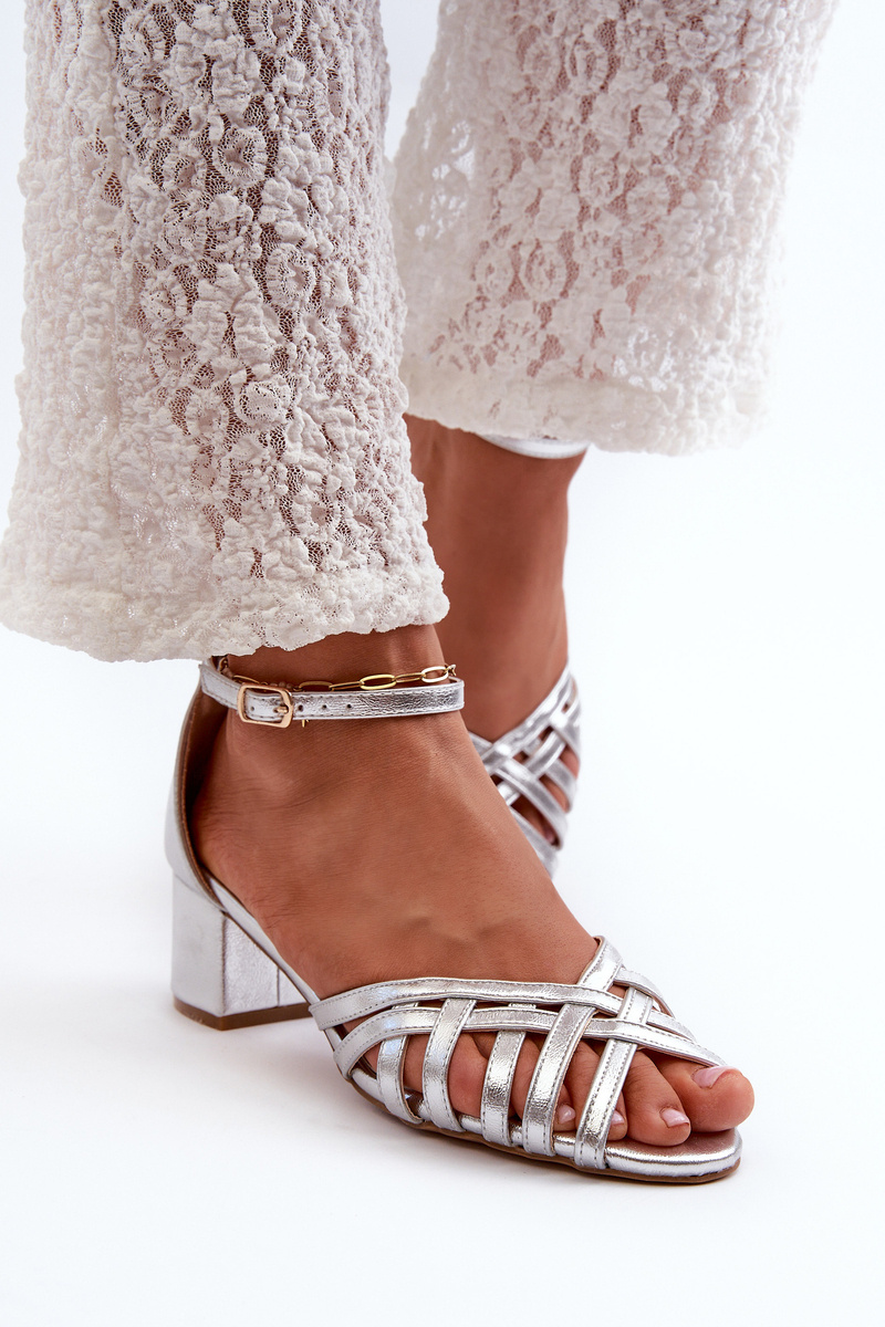 Жіночі босоніжки зі штучної шкіри на низькому каблуці Silver Monsha