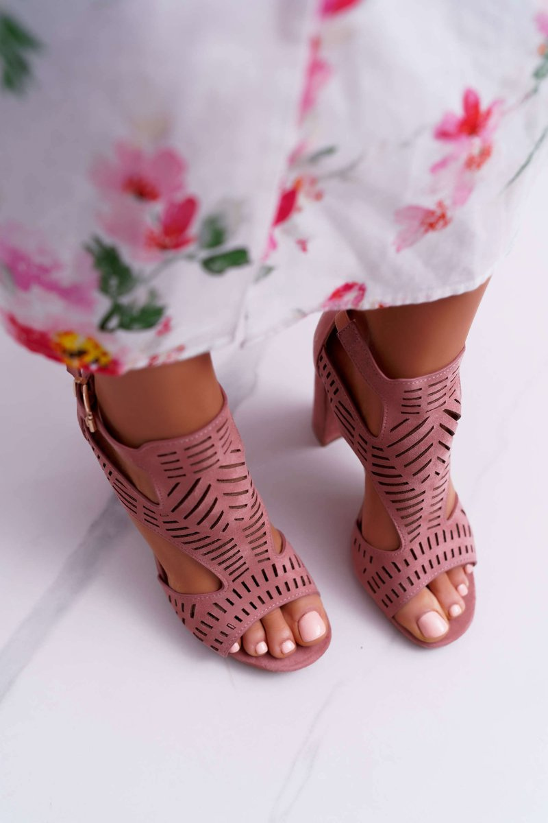 Модні жіночі босоніжки з еко-замші. Ажурне оздоблення, ніс із відкритим носком і стійка шпилька. У цьому взутті є все, про що ми завжди мріяли. Застібається на золоту пряжку і блискавку. Під час вибору розміру запропонуйте таблицю розмірів, яка доступна після наведення курсора на розмір або натискання на нього.