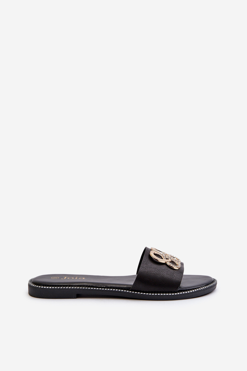 Жіночі босоніжки з декором з еко шкіри на плоскому каблуці Чорні Sadria