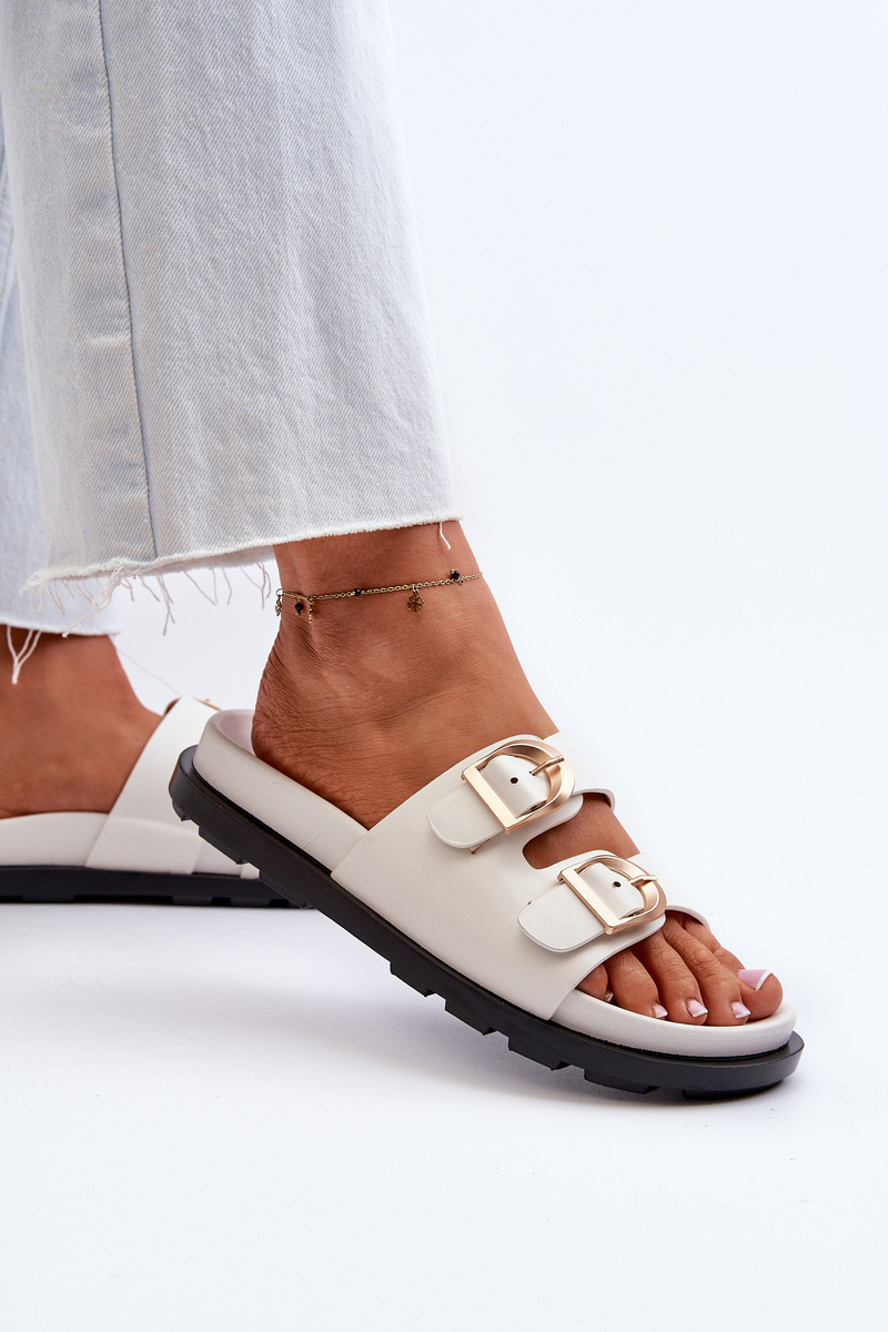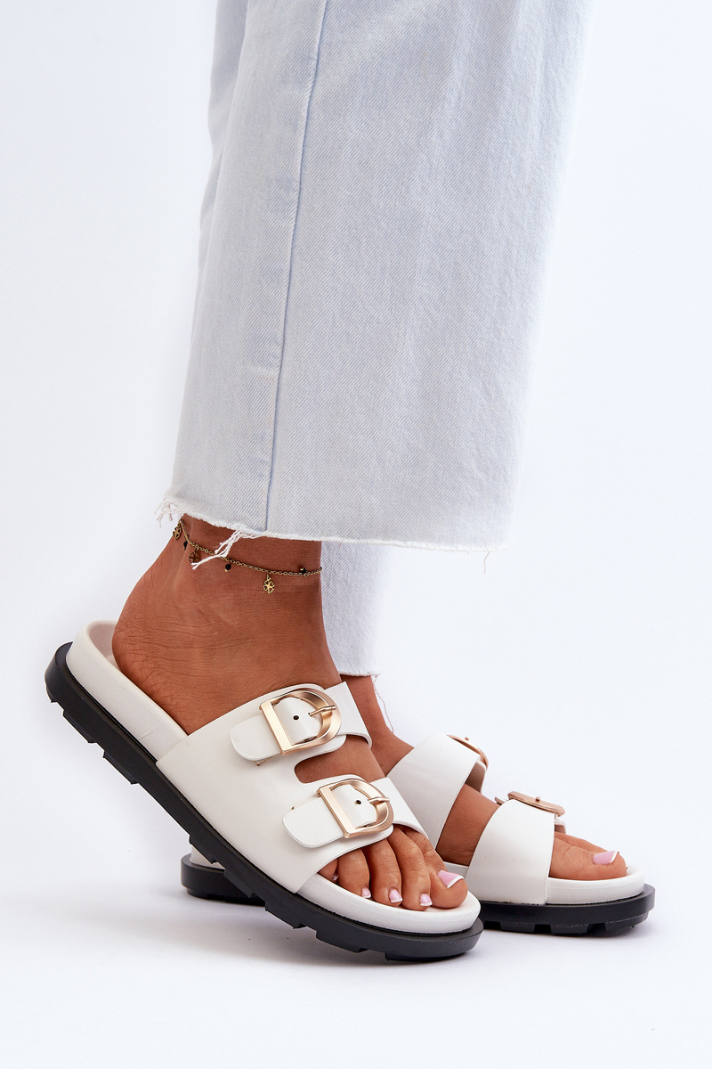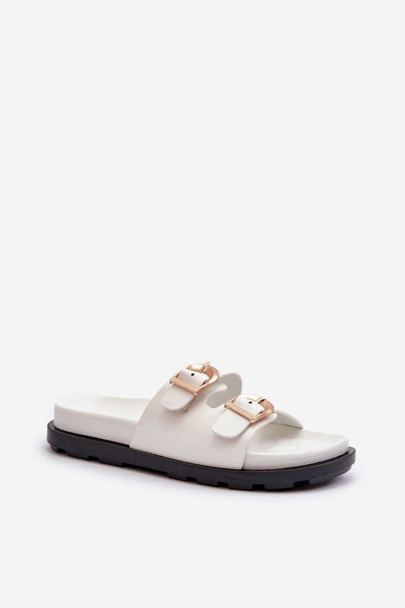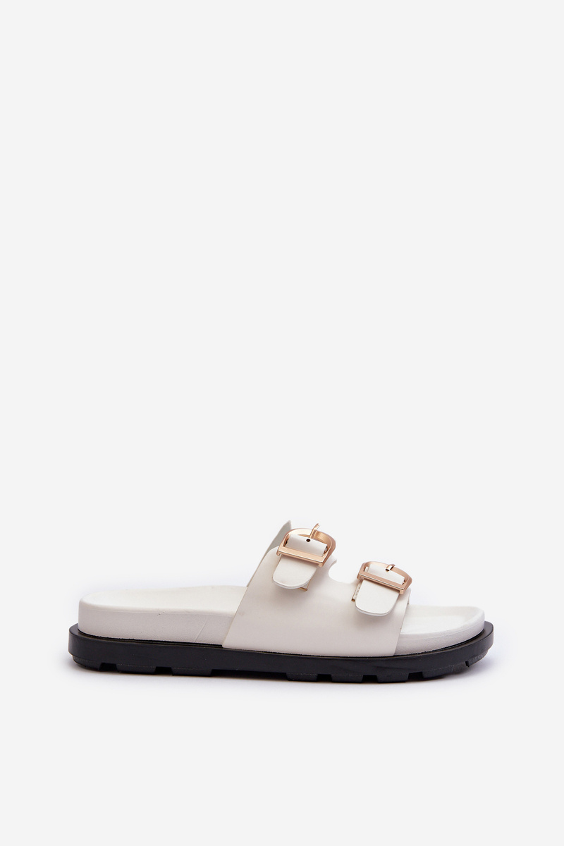 Жіночі босоніжки з екошкіри з пряжками білі Valmira