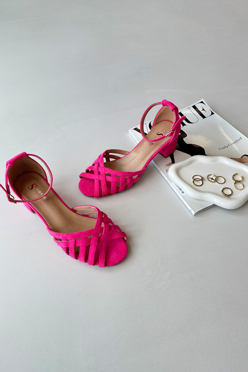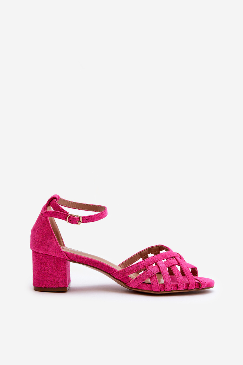 Жіночі босоніжки з еко-замші кольору фуксії на низькому каблуці Monsha