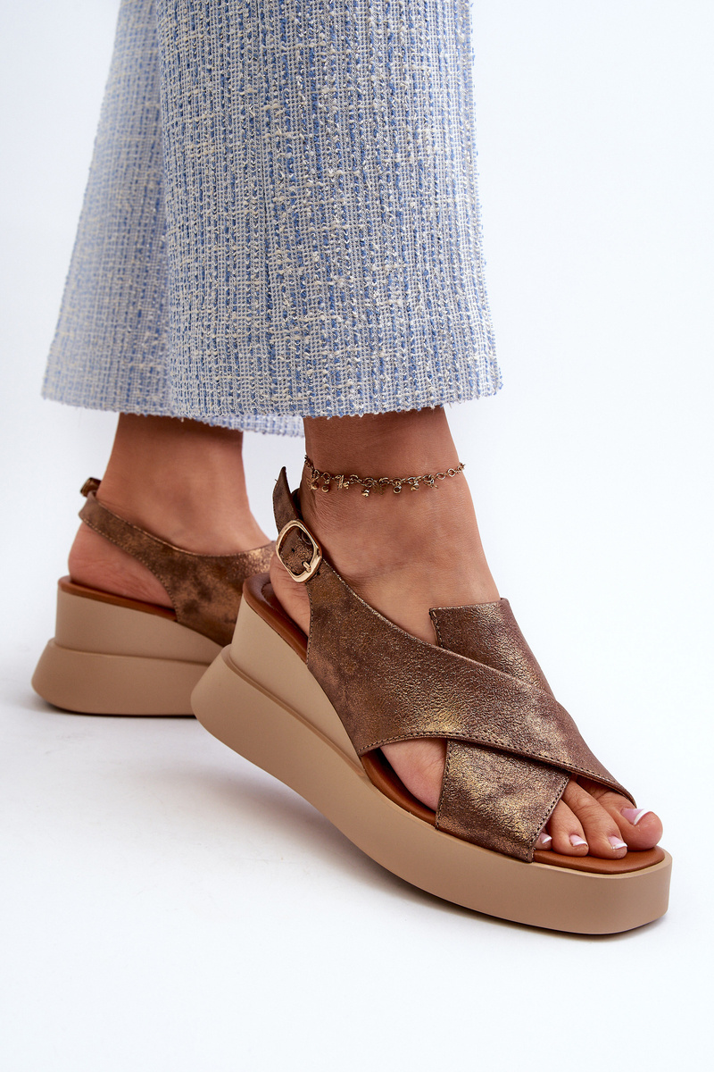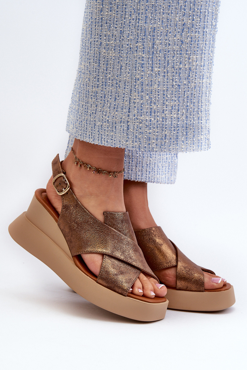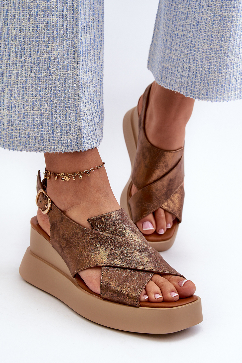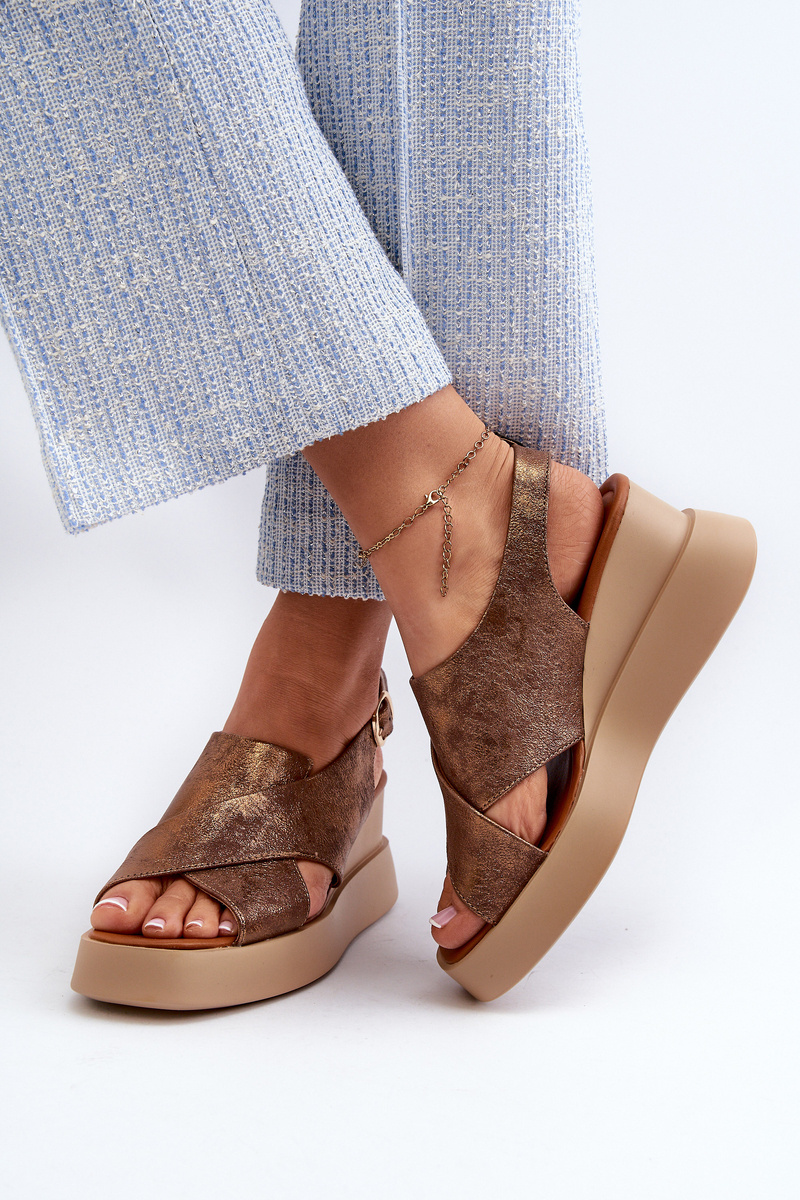 Жіночі босоніжки з еко шкіри на платформі та танкетці міді Vaiara
