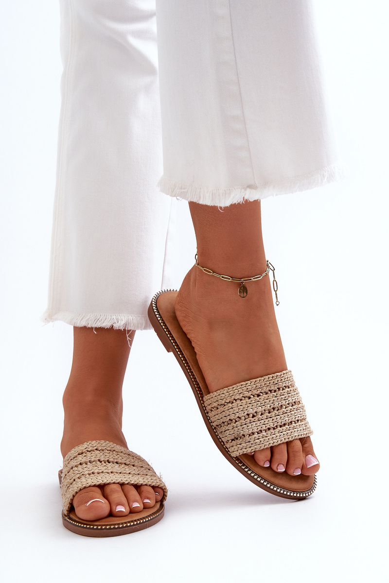 Жіночі босоніжки з плетеним ремінцем на плоскій підошві Бежеві радіани