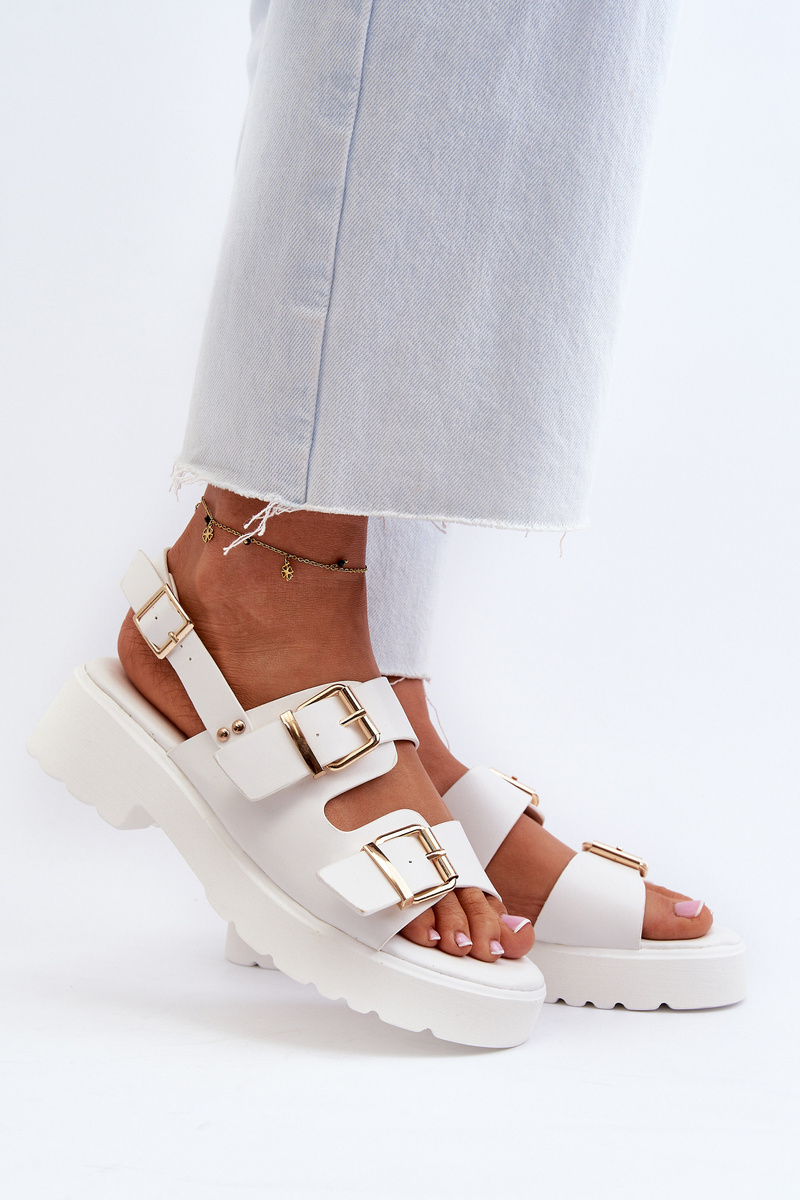 Жіночі босоніжки з пряжками з еко шкіри Konanttia білого кольору