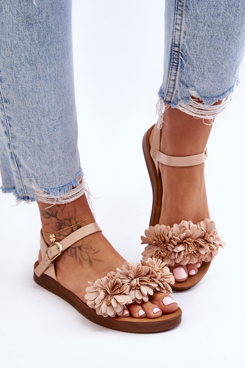Жіночі босоніжки з текстильними квітами бежеві Fiori