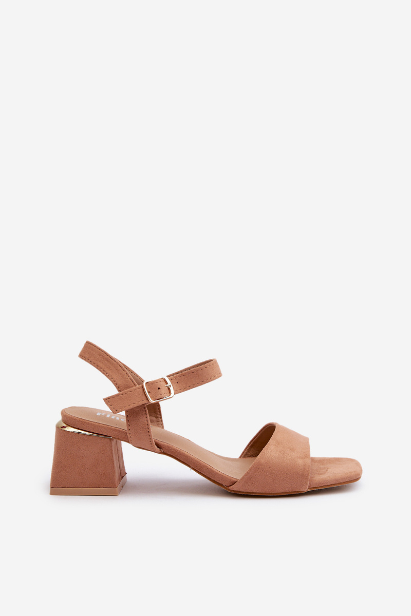 Жіночі босоніжки на блочному каблуці з верблюжої еко-замші Leisha