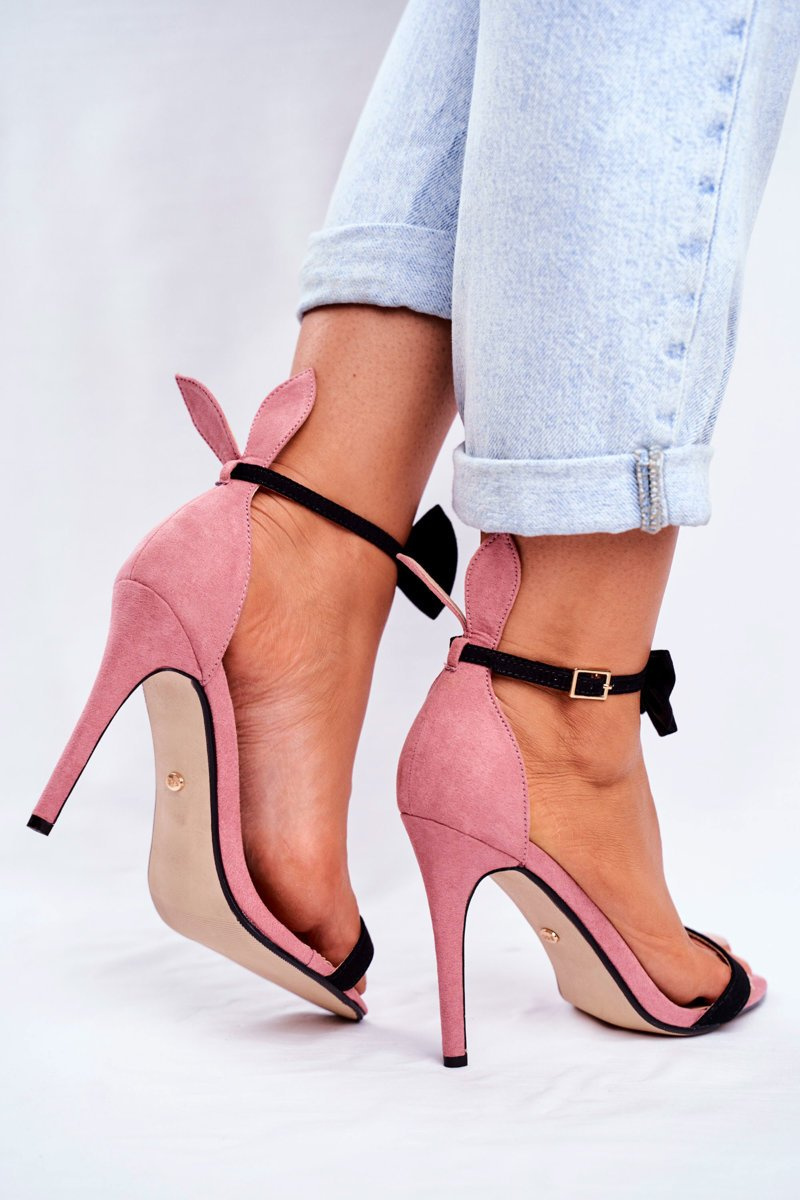 Жіночі босоніжки на високому каблуці Кролячі вушка Рожевий медовий зайчик