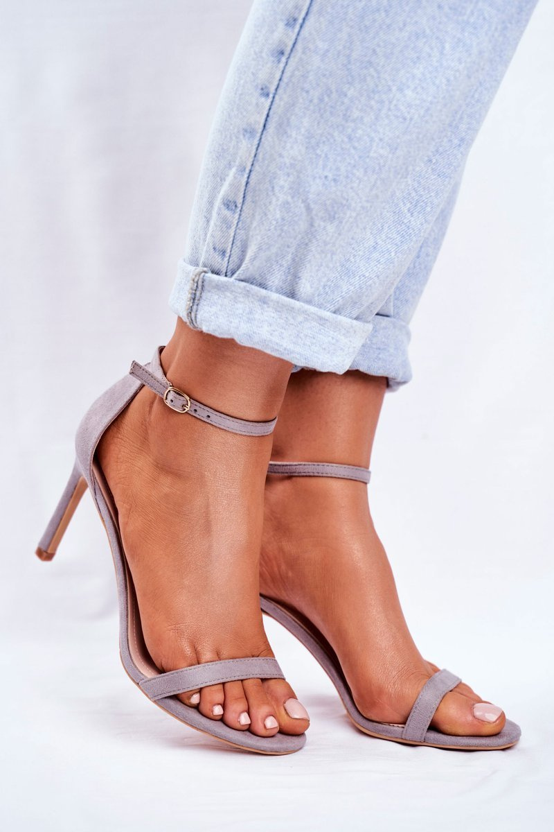 Жіночі босоніжки на високому каблуці класичні сірі василіанки