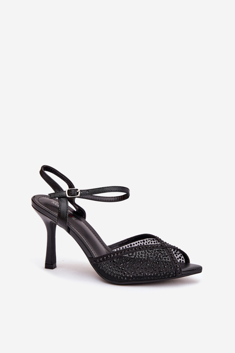 Жіночі босоніжки на каблуку з оздобленням Чорне Peloria