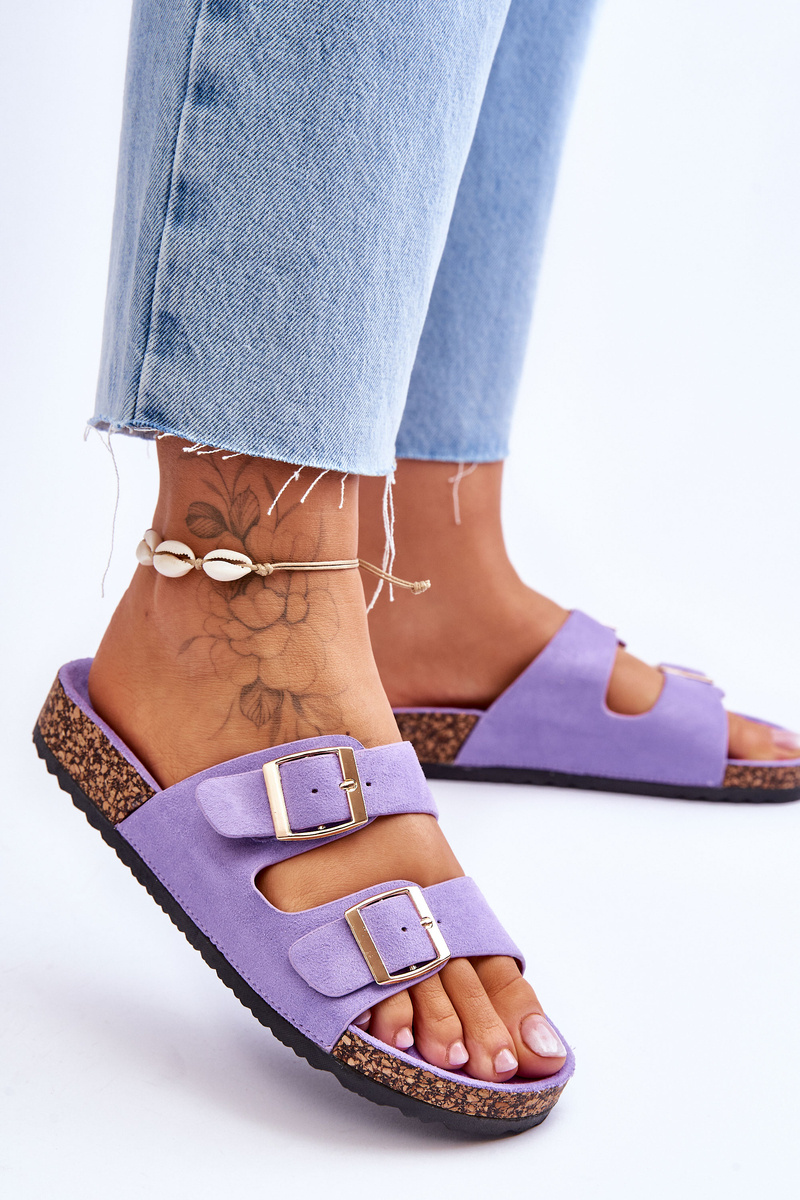 Жіночі тапочки виготовлені з приємної на дотик еко замші. Мають декоративні пряжки з регульованими ремінцями. Ця модель була встановлена на коркову платформу. Ідеальне взуття для літнього сезону. Ці шльопанці мають профільовану зручну устілку. Ви обов'язково повинні їх мати! Обираючи розмір, орієнтуйтеся на таблицю розмірів.