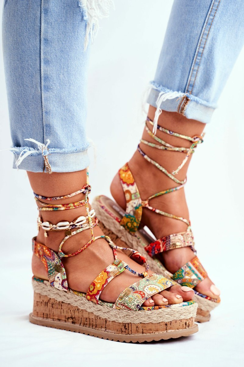 Кожен з нас мріє про такі босоніжки <3 Дивовижний візерунок, який вписується в літню атмосферу. Коркова платформа, оздоблена лляною ниткою, не тільки виглядає красиво, але й підтягує та підкреслює нашу фігуру. Модна зав'язка навколо щиколотки, яка забезпечить ідеальну посадку босоніжок. Під час вибору розміру пропонуйте таблицю розмірів.