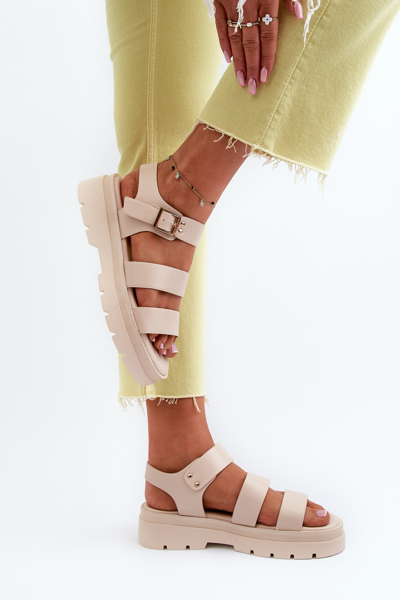 Жіночі босоніжки на масивній підошві бежевого кольору Nicarda