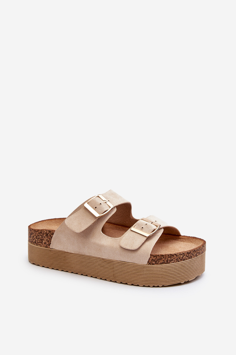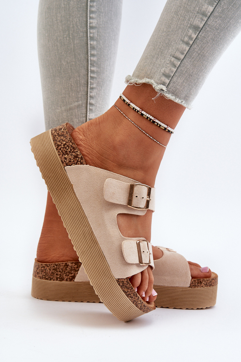 Жіночі босоніжки на платформі з пряжками бежевого кольору Lolpey