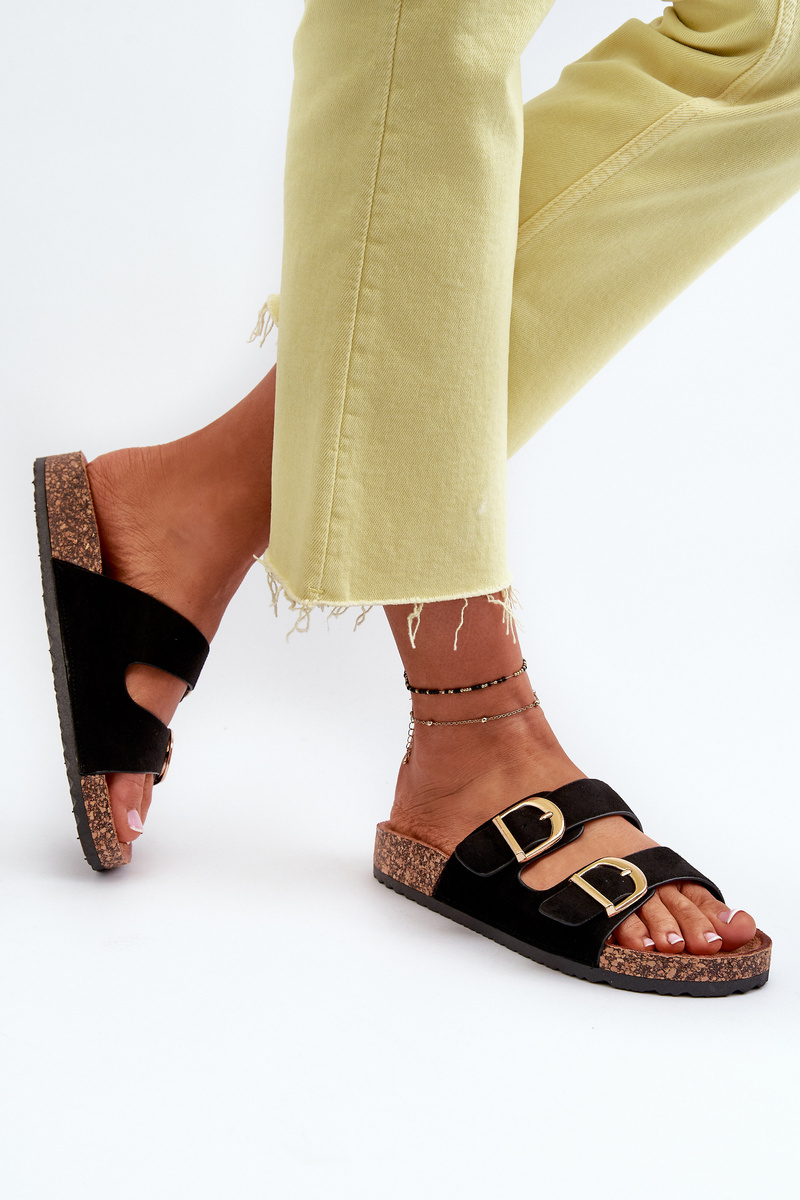 Жіночі шльопанці виготовлені з текстильного матеріалу. Мають декоративні пряжки з регульованими ремінцями. Ця модель була розміщена на корковій платформі. Ідеальне взуття для літнього сезону. Ці шльопанці мають контурну зручну устілку. Ви точно повинні їх мати! Обираючи розмір, орієнтуйтеся на таблицю розмірів.