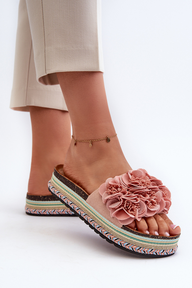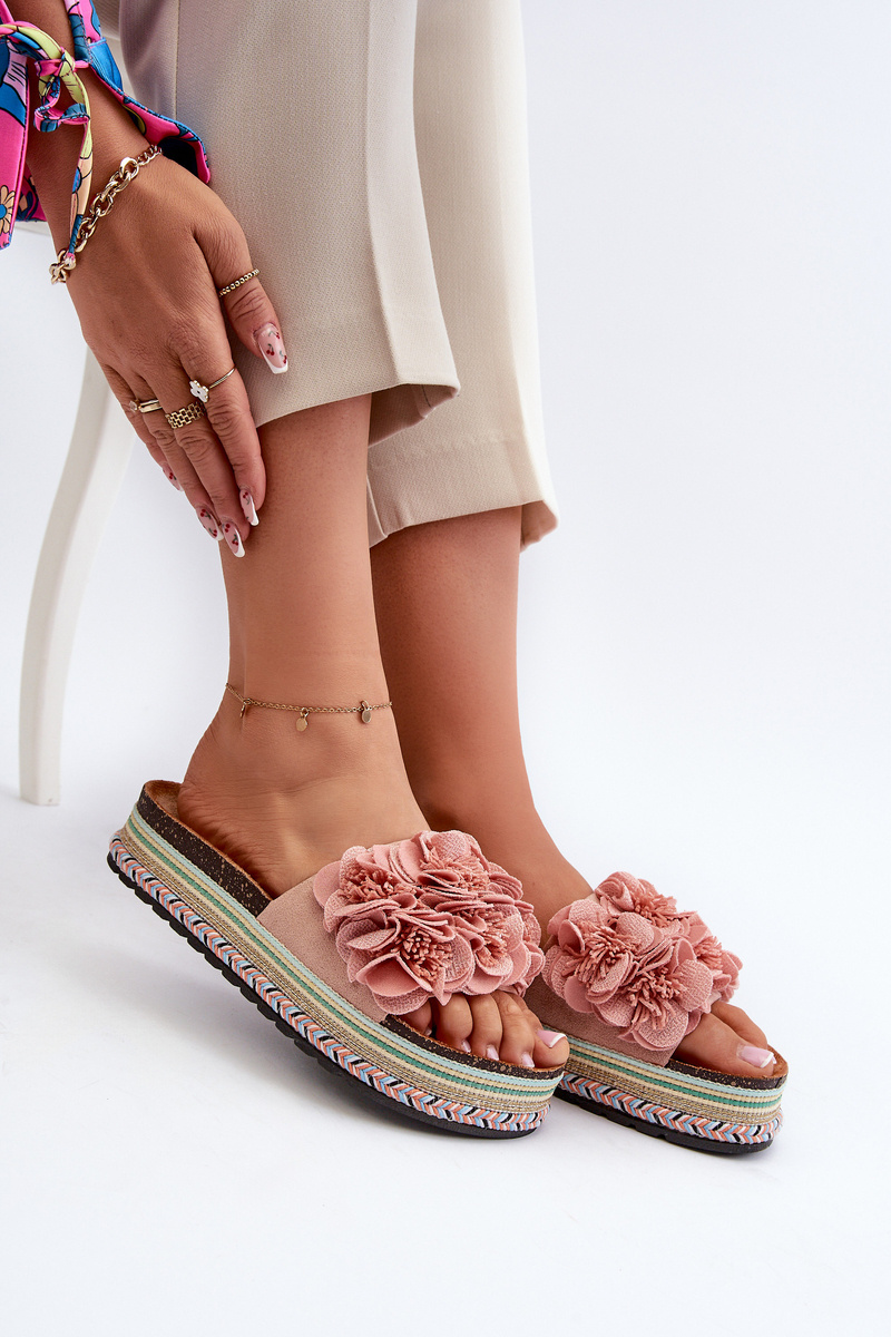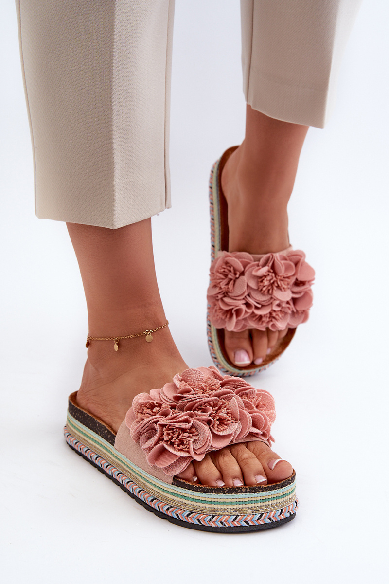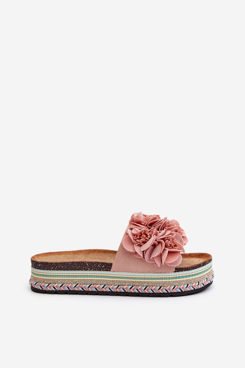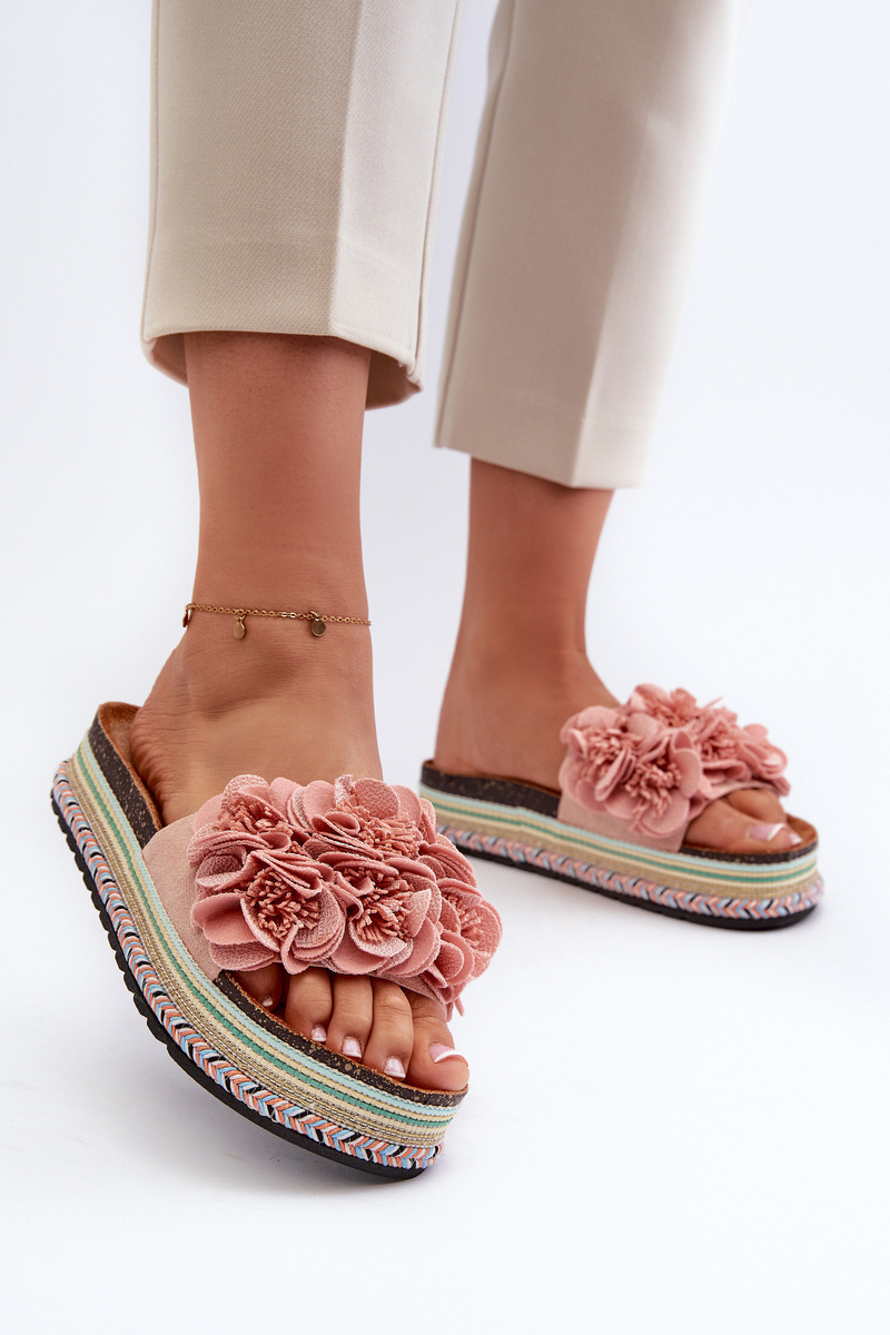 Жіночі босоніжки на платформі, прикрашені квітами, рожеві Nodina