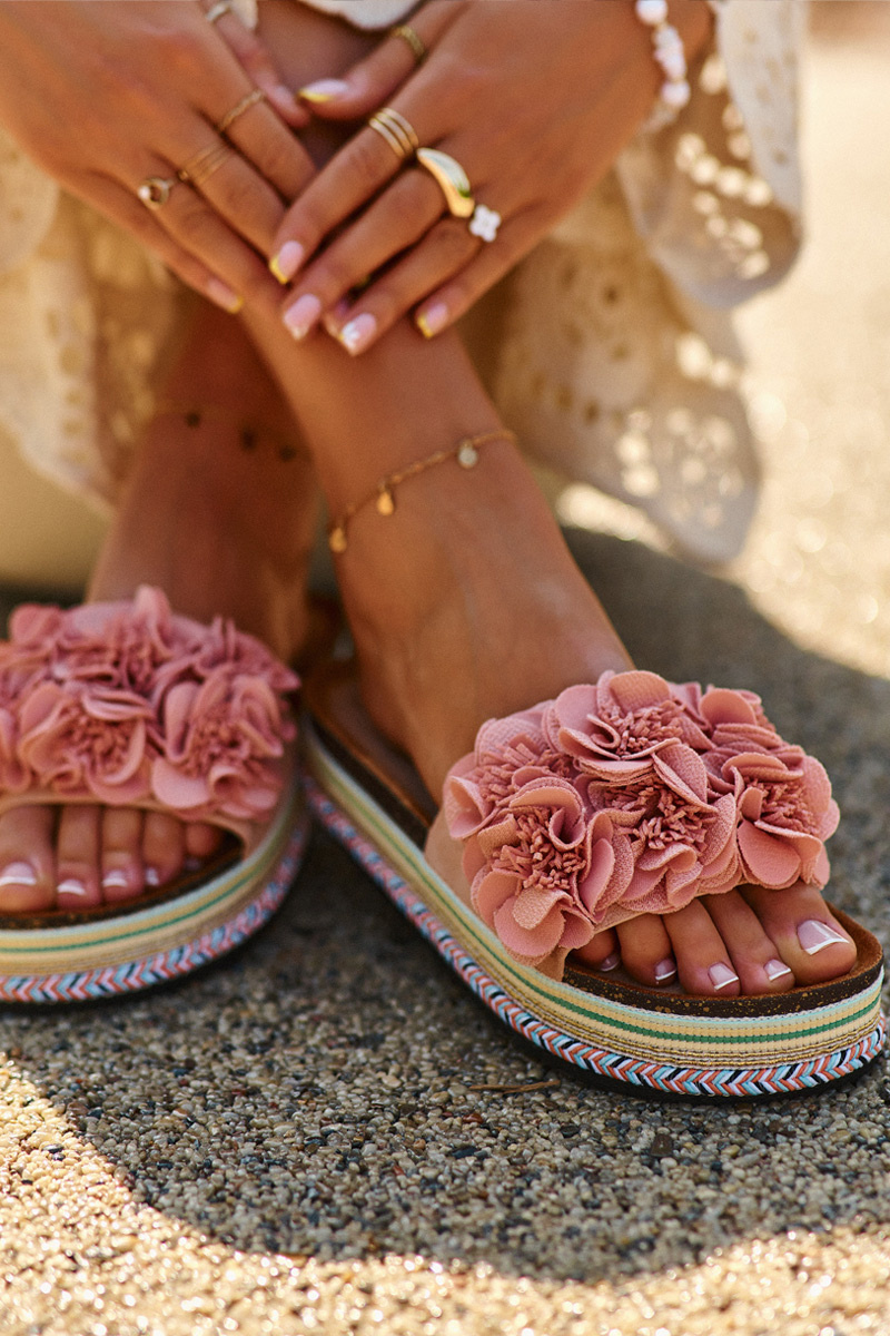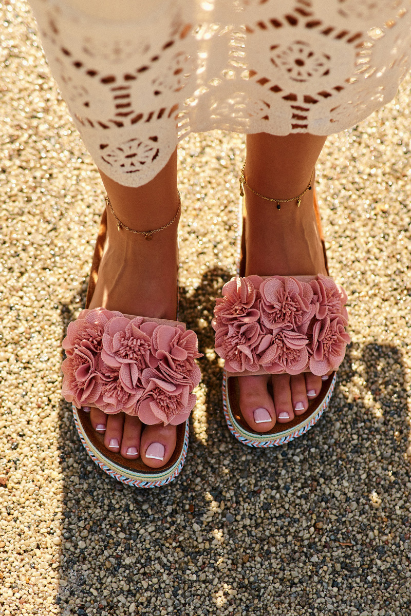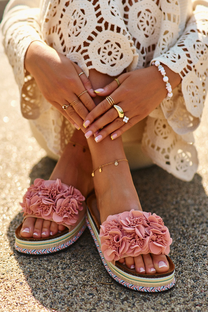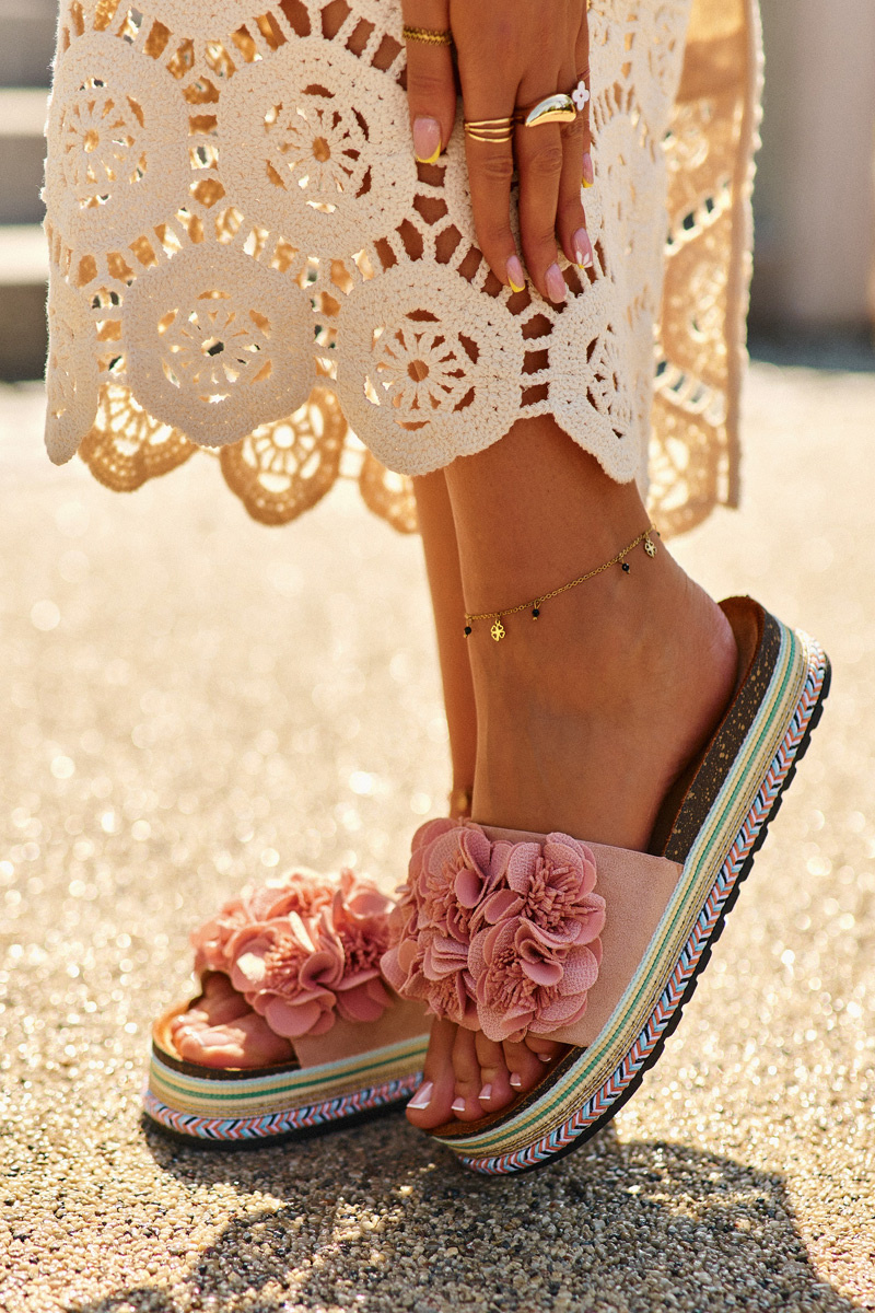 Жіночі гірки на масивній платформі - ідеальний вибір для жінок, які цінують модний вигляд і комфорт. Стильна модель привертає увагу не тільки масивною платформою, але й милими квітами, які прикрашають передню частину взуття. Ідеально підійдуть для літніх днів, ці гірки стануть чудовим доповненням до суконь, спідниць, а також джинсів і шортів. Вибираючи розмір, зверніться до таблиці розмірів.