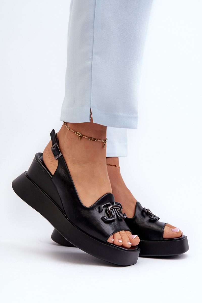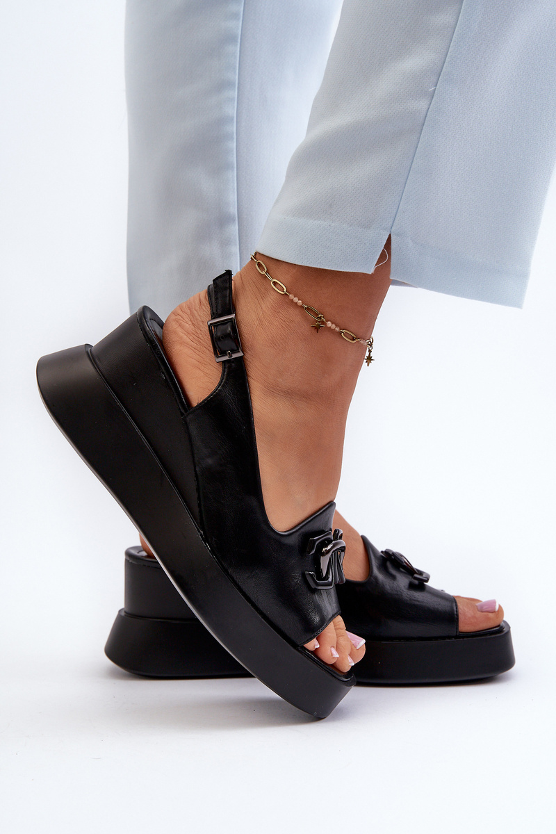 Жіночі босоніжки на платформі та танкетці з чорними прикрасами Janesca