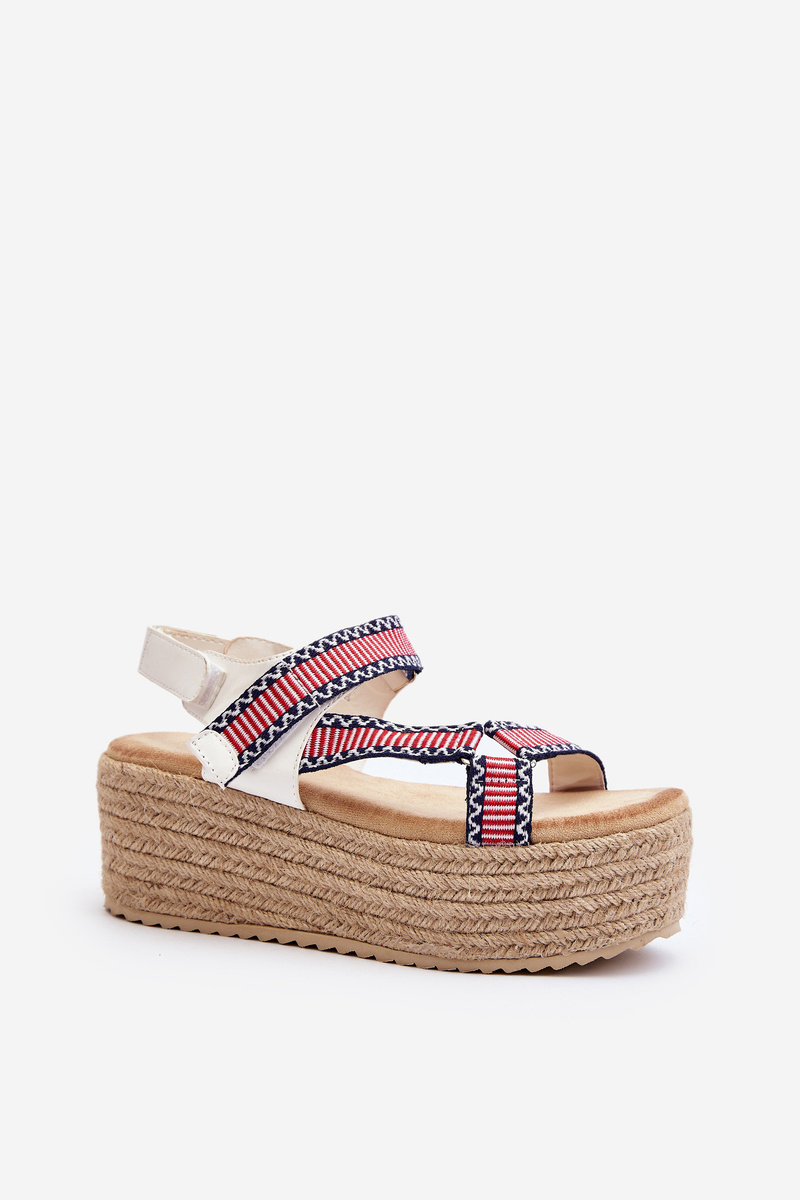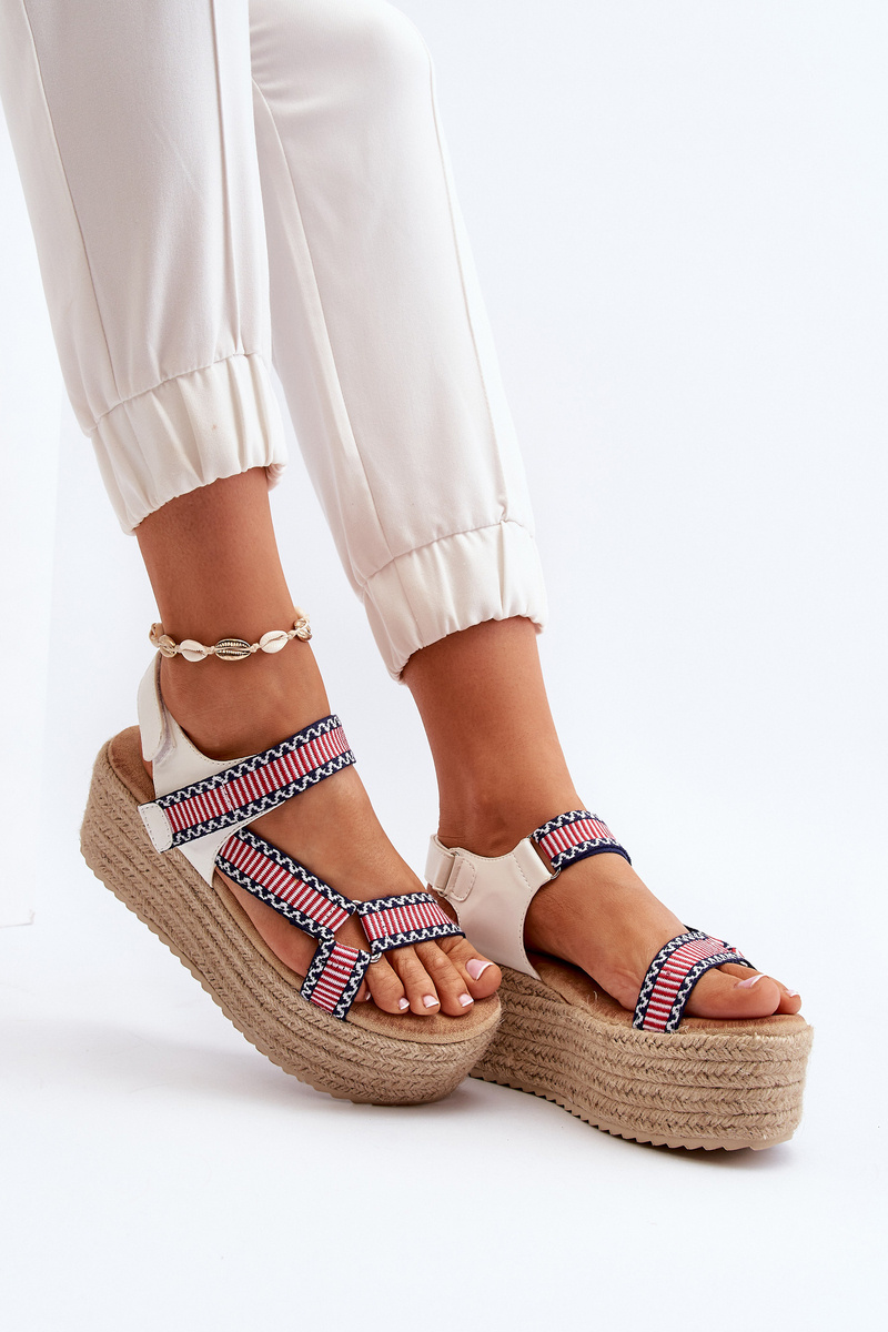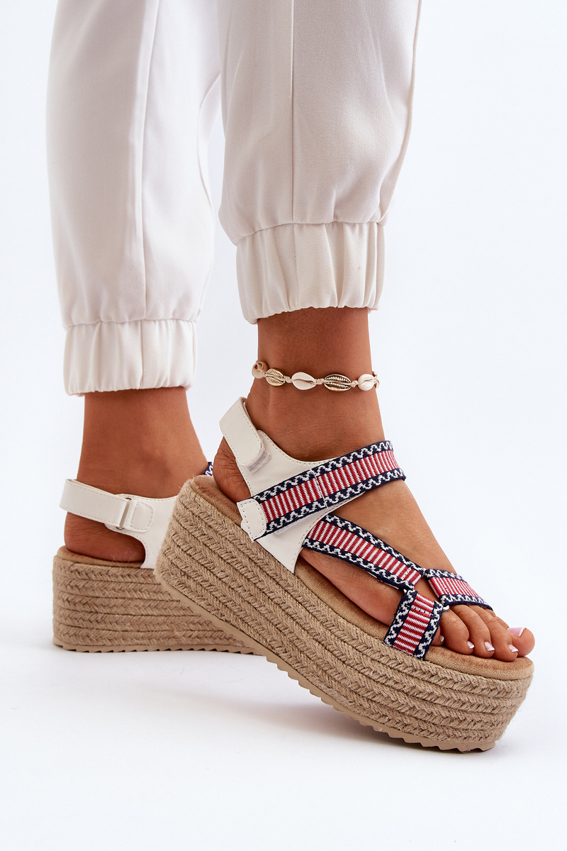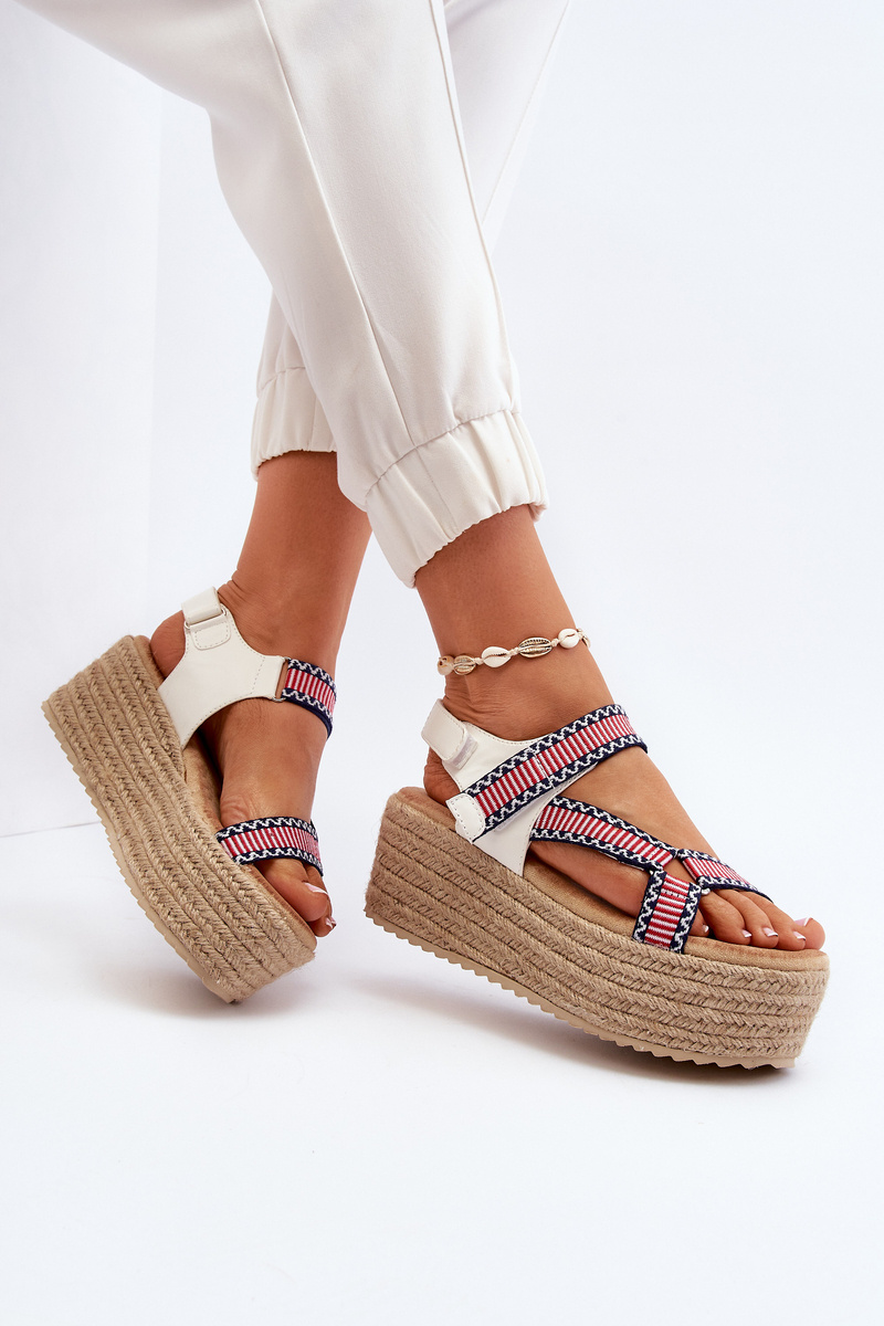 Жіночі босоніжки на плетеній масивній підошві білі Luminea