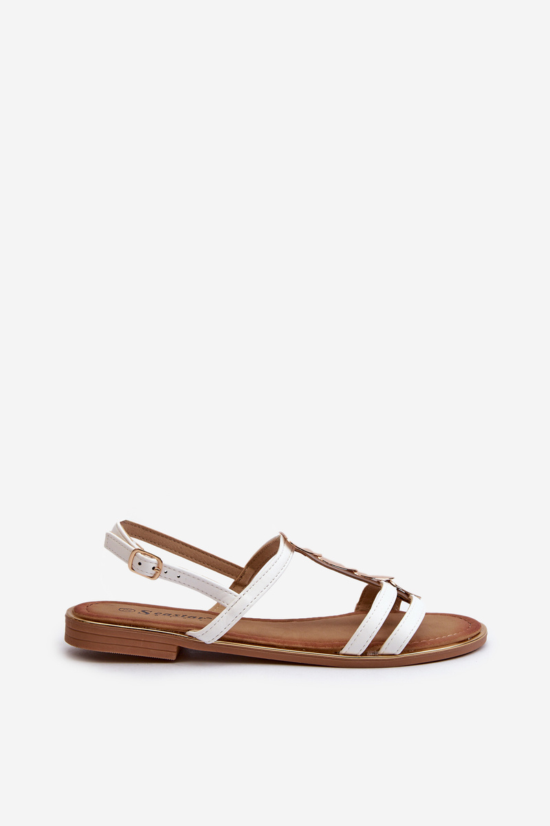 Жіночі босоніжки на плоскій підошві з біло-золотим декором Raiva