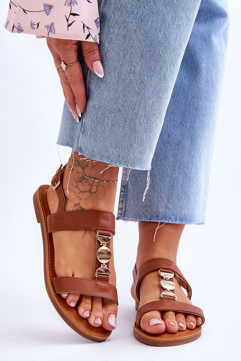 Жіночі босоніжки на плоскій підошві з декоративним поясом Brown Berry